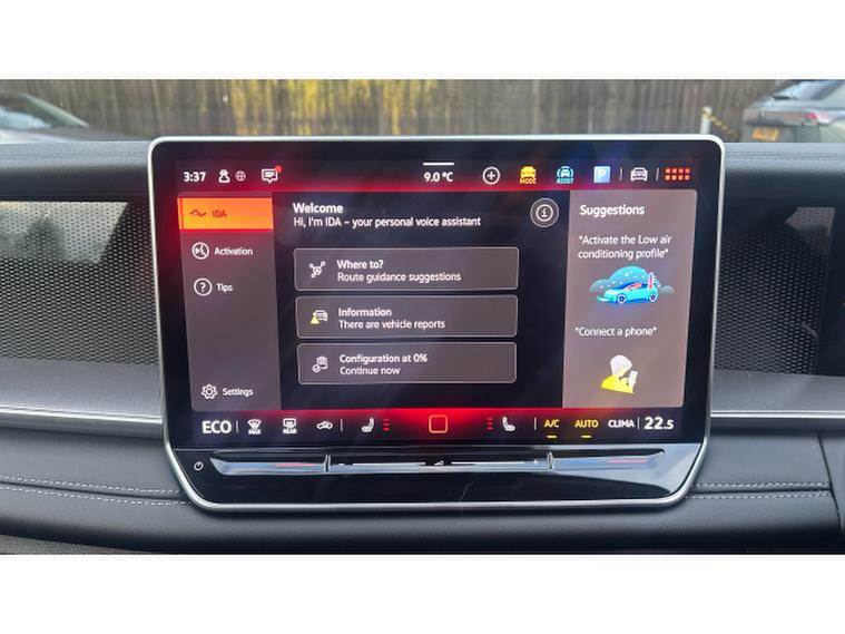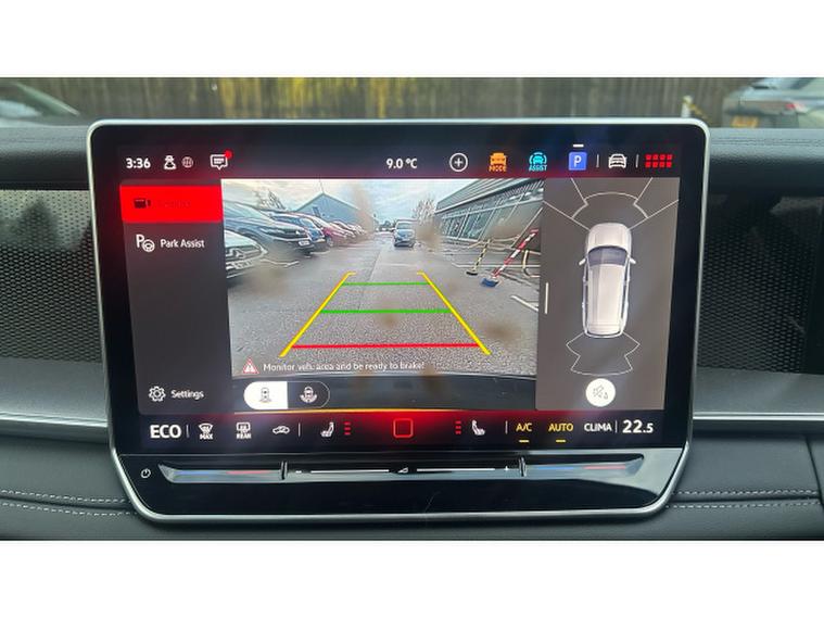Safety is comprehensive, featuring Front Assist with pedestrian and cyclist monitoring, Front Cross Traffic Assist, oncoming vehicle braking with swerve support, curtain and centre airbags, dynamic road sign display, and a predictive speed limiter, all supported by an alarm system with interior protection.