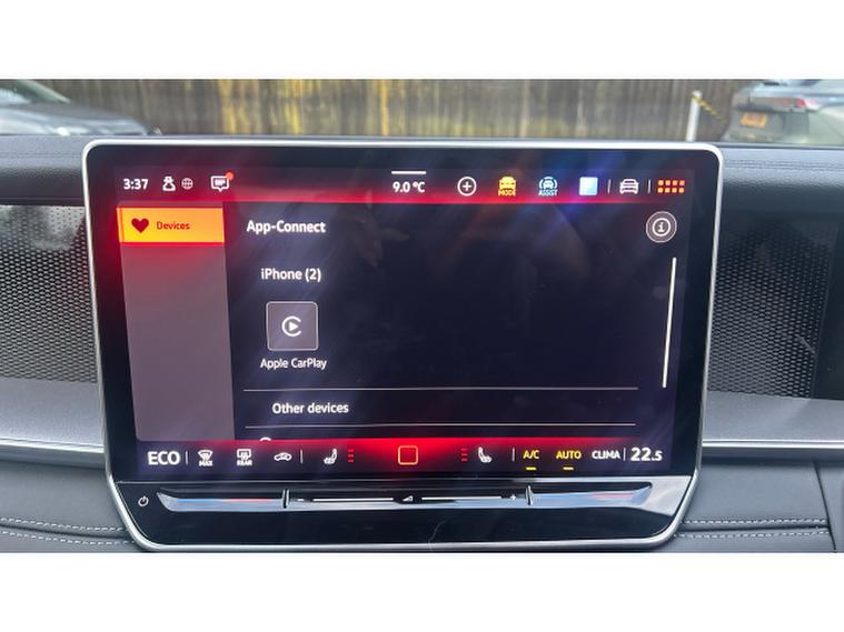 This example is particularly well equipped. The panoramic sunroof (front and rear) floods the cabin with natural light, while the optional 19 Catania black diamond‑, turned alloy wheels give the car a strong, confident stance. The Winter Pack adds everyday comfort with heated front seats and a heated, leather‑, wrapped multifunction steering wheel with shift paddles.