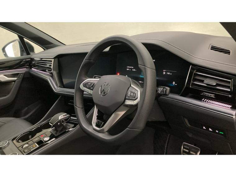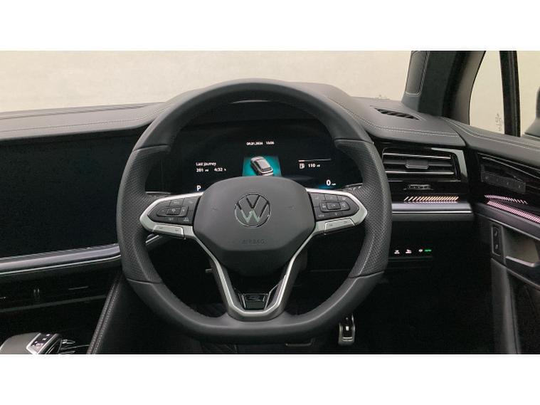Technology is at the heart of the Touareg, featuring Apple CarPlay and Android Auto, wireless App-Connect, inductive smartphone charging, USB-C ports throughout, and an advanced navigation system. Parking is effortless thanks to Area View cameras and Park Assist Pro.