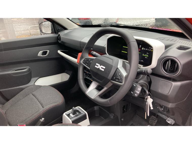 Dacia Spring 27kWh Expression 65 48kW 5dr Auto Electric Hatchback, , This 2025 Dacia Spring 65 Expression is an exceptional example, boasting an incredibly low mileage of just 10 miles, making it practically new. As an all electric vehicle, it offers an efficient and environmentally conscious driving experience. The Spring is equipped with a 27 kWh battery, providing a maximum range of 140 miles on a full charge. Recharging at home with a 7kW charger takes approximately 5 hours, while rapid public charging can take the battery from empty to 80% in just 1 hour. This Expression trim level includes convenient features such as manual air conditioning for your comfort and rear parking sensors to assist with manoeuvring.