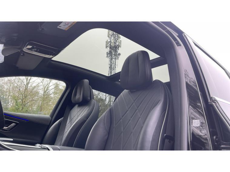 Comfort is where this EQE truly shines. The cabin is a sanctuary trimmed in Black and Grey Nappa leather upholstery, with electric memory front seats that remember your perfect driving position. Add multi-contour front seats with a massaging function and heated front seats, and suddenly long journeys feel indulgent rather than tiring. Overhead, the panoramic sliding sunroof floods the interior with light, while ambient lighting lets you tailor the mood to suit your drive.