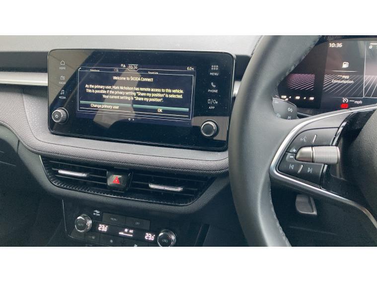 Skoda Fabia 1.0 MPI 80 SE Edition 5dr Petrol Hatchback, , The 2025 koda Fabia Hatchback 1.0 MPI 80 SE Edition 5-door delivers an appealing blend of simplicity, practicality and everyday usability, driven by an efficient 1.0-litre petrol engine that returns around 54 mpg and keeps CO₂, emissions near 117119 g/km while producing 80 PS ideal for city commuting and suburban errands with low running costs.Inside its compact body, the Fabia surprises with a 380-litre boot and clever storage solutions that make hauling shopping or weekend luggage straightforward, and the SE Edition trim adds useful kit such as an 8.25″, infotainment touchscreen with wireless SmartLink for Apple CarPlay/Android Auto, keyless start/stop, rear parking sensors and dual-zone air conditioning that elevate comfort and convenience.Safety and everyday peace of mind are boosted by features like traffic-sign recognition and driver-attention monitoring, while LED daytime running lights and alloy wheels give the hatchback a polished presence a no-nonsense supermini that doesnt skimp on space or equipment.