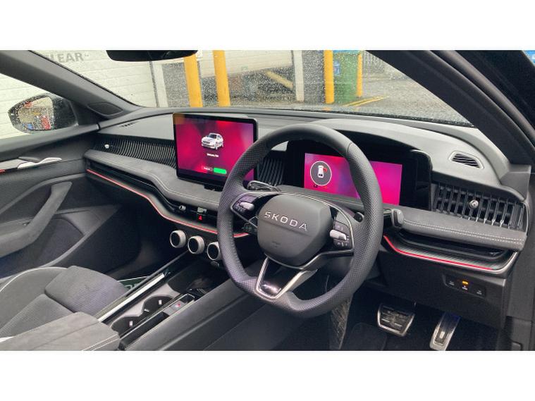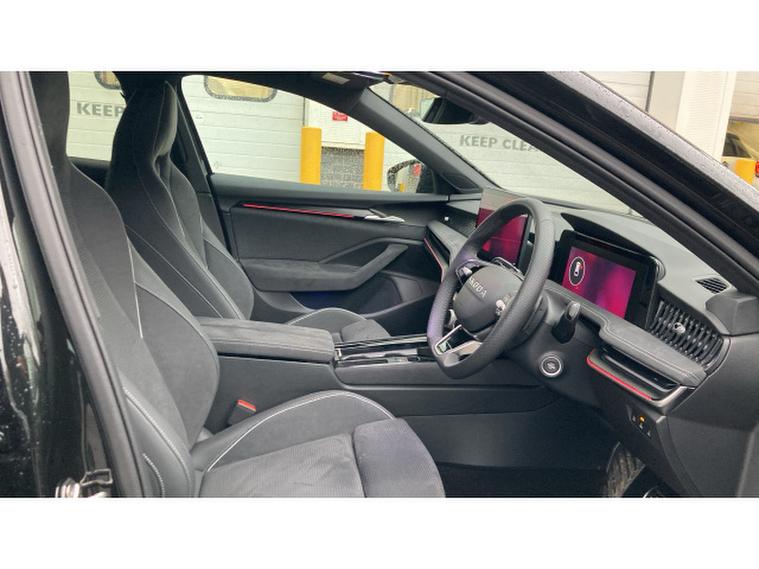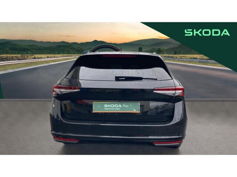 Skoda Superb 1.5 TSI iV Sportline 5dr DSG Estate, , The 2025 koda Superb Estate 1.5 TSI iV SportLine 5-door DSG delivers a compelling combination of everyday usability and dynamic flair, pairing a plug-in hybrid powertrain a 1.5-litre petrol engine mated to an electric motor with a smooth DSG automatic that brings brisk, efficient performance and an all-electric range around 79 miles on a full charge, helping keep running costs and emissions down without compromising on real-world flexibility.The SportLine trim injects sporty style with gloss-black exterior touches, 19″, polished black alloy wheels and bespoke badging, while inside youll find heated, massaging sport seats, ambient lighting and purposeful design that feels more premium than its estate silhouette suggests.Practicality remains a hallmark with abundant cabin space and a large boot for luggage, family kit or weekend gear and modern tech including a large touchscreen with navigation, adaptive cruise control, tri-zone climate control and a comprehensive safety suite ensure comfort, connectivity and confidence on long journeys or daily commutes.