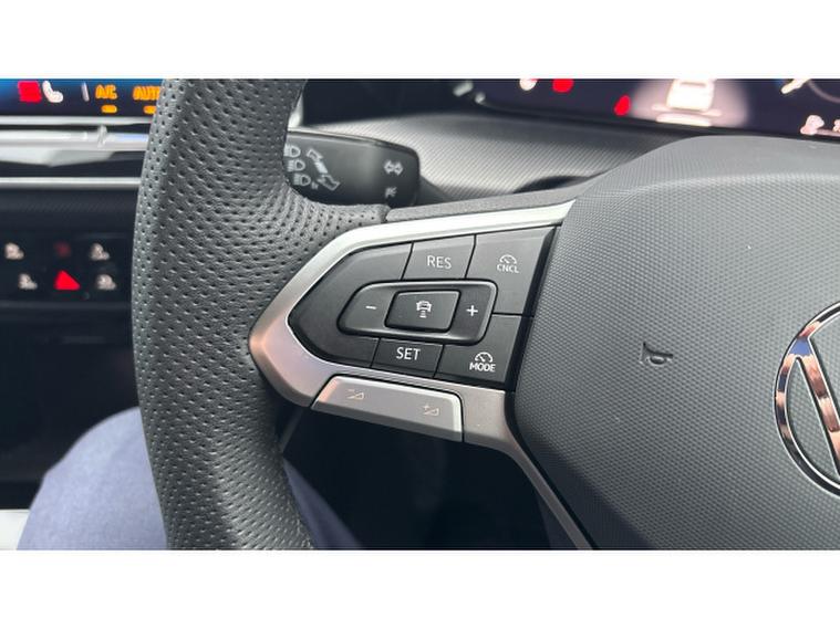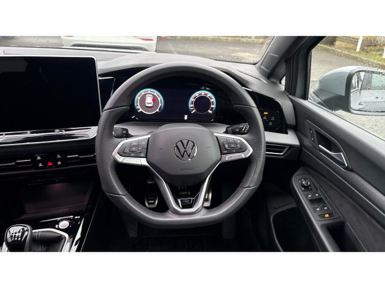 The R-Line specification gives this Golf a sporty edge, enhanced further by the striking 18 Leeds black diamond-turned alloy wheels. Inside, comfort is assured with the Winter Pack, including heated front seats and a heated multifunction sports steering wheel. Technology highlights include the latest Discover Navigation system with a large 12.9 touchscreen, IDA voice assistance with ChatGPT, Adaptive Cruise Control, Front Assist, and Area View camera, making every journey safer and more enjoyable. The Light & Sight Pack adds further convenience with automatic headlights and rain-sensing wipers.