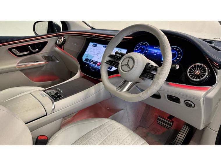 2024 Mercedes Benz EQE 350 AMG Line (Premium Plus) presents an exceptional opportunity with its remarkably low mileage. PANORAMIC SLIDING GLASS SUNROOF, giving you light and airy cabin. KEYLESS GO giving you access without the use of a key and once inside you are greeted by these comfortable NEVA GREY/BISCAY BLUE LEATHER SEATS which are HEATED SEATS and CLIMATISED SEATS with MEMORY FUNCTION. MB HYPERSCREEN is ideal for displaying ANDRIOD AUTO/APPLE CAR PLAY so that you can display your favourite apps like SPOTIFY and keeping your phone charged with WIRELESS CHARGING combined with BURMESTER 3d SURROUND SOUND SYSTEM. HEAD-UP DISPLAY is perfect for keeping your eyes on the road and twinned with Lane Keeping assist and Blind Spot monitor to keep you safe. Finished in SELENITE GREY metallic paint with NEVA GREY / BISCAY BLUE LEATHER and 22" AMG ALLOYS gives this EQE strong curb appeal and the ideal for your next car.