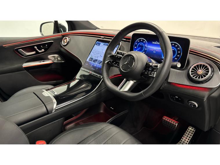 With exceptionally low mileage for its year, this 2024 Mercedes Benz EQE 500 AMG Line (Premium) presents a remarkable opportunity and four wheel drive saloon boasts the offering a premium driving experience. PANORAMIC SLIDING GLASS SUNROOF, giving you light and airy cabin. KEYLESS GO giving you access without the use of a key and once inside you are greeted by these comfortable BLACK LEATHER/SPACE GREY which are HEATED SEATS, CLIMATISED FRONT SEATS and MEMORY SEATS. MBUX SAT NAV Screen is ideal for displaying ANDRIOD AUTO/APPLE CAR PLAY so that you can display your favourite apps like SPOTIFY and keeping your phone charged with WIRELESS CHARGING - Finished in OBSIDIAN BLACK metallic paint with 21" AMG ALLOYS gives this strong curb appeal to be the right choice EQE 500!