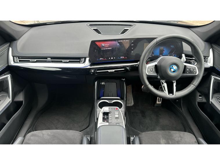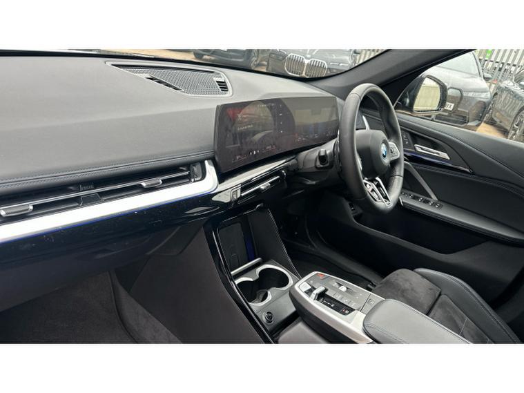 BMW X1 xDrive 25e M Sport 5dr [Tech/Pro Pack] Step Auto Estate, , Introducing the impressive 2025 BMW X1 xDrive25e M Sport, a modern and versatile plug-in hybrid SUV finished in sophisticated Black Sapphire. The exterior styling is perfectly matched to a sporty and refined interior, featuring M Alcantara Veganza combination Black seats that deliver both comfort and durability. This latest-generation X1 blends BMWs dynamic driving character with everyday practicality and cutting-edge technology, making it an excellent choice for drivers seeking efficiency without compromise.