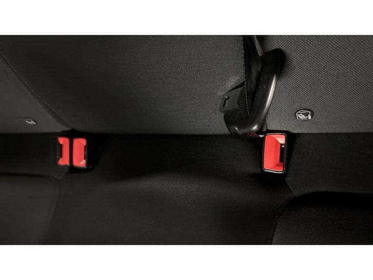 - Cloth upholstery with red stitching
