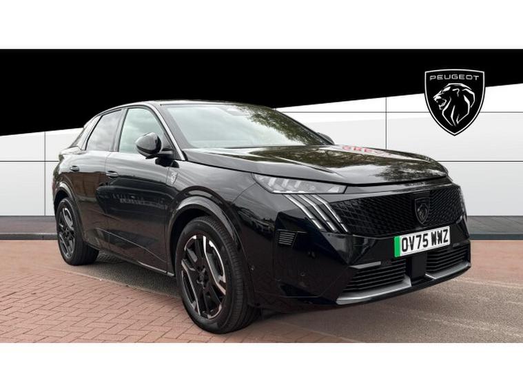 Peugeot 3008 157kW GT 73kWh 5dr Auto Electric Estate, , Bold, futuristic and unmistakably premium the Peugeot E-3008 Electric Estate delivers head-turning looks and the smart benefits of electric motoring in one stunning package. With its sleek fast-back SUV silhouette, striking Pixel LED head-lamps and floating spoiler, this car sets a new standard in style. Step inside and youre greeted by a premium cabin that boasts the next-generation i-Cockpit interface, ambient lighting and high tech finishes its more than just transport, its a statement. But great style is just the beginning. As a full-electric vehicle, the E-3008 promises 0 g/km CO₂, emissions and a usable 73 kWh battery delivering up to around 326 miles WLTP on a single charge. Rapid charging at public high-power stations means you can add significant range in minutes making it ideal for daily commutes or weekend escapes.