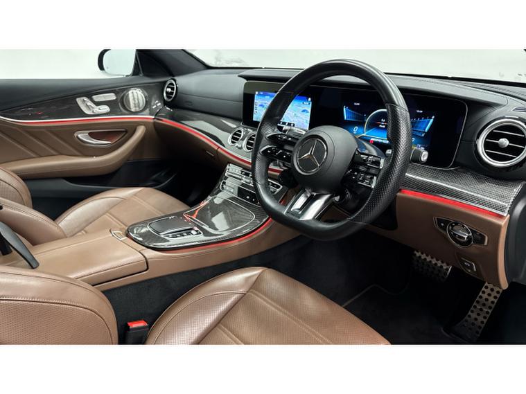 2021 Mercedes Benz E Class E53h BiTurbo AMG Night Edition (Premium Plus) is a remarkable example of performance and luxury. Featuring a powerful 3.0L Petrol Hybrid engine paired with Four Wheel Drive and offers an exhilarating driving experience. The AMG Night Edition trim enhances its striking appearance, while the PANORAMIC ELECTRIC GLASS SUNROOF floods the cabin with natural light and truly stands out with its impressive acceleration, achieving 0-62mph in just 4.5 seconds, a testament to its advanced hybrid technology and AMG tuning. KEYLESS GO giving you access without the use of a key and once inside you are greeted by these comfortable HAZLENUT BROWN / BLACK NAPPA LEATHER which are HEATED SEATS and MEMORY PACKAGE. MBUX SAT NAV Screen is ideal for displaying ANDRIOD AUTO/APPLE CAR PLAY so that you can display your favourite apps like SPOTIFY and keeping your phone charged with WIRELESS CHARGING. BLIND SPOT ASSIST and PARKING PACK with 360 camera are ideal convenience options as standard. Finished in GRAPHITE GREY metallic paint with 20" AMG ALLOYS and the NIGHT PACKAGE gives this the perfect colour combination and curb appeal.