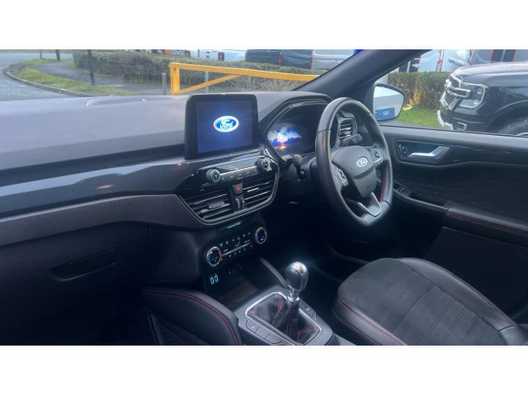 Inside, the cabin is modern and well-appointed, featuring sports-style seats, digital instrument display, and Fords SYNC infotainment system with touchscreen, satellite navigation, Apple CarPlay, and Android Auto for seamless connectivity. High-quality materials and thoughtful layout ensure comfort for both driver and passengers.