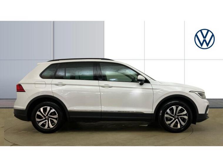 Volkswagen Tiguan 1.5 TSI 150 Active 5dr Petrol Estate, , The Volkswagen Tiguan Active 1.5 TSI 150PS presents a compelling package for those seeking a versatile and practical SUV. Finished in a crisp Pure White, its clean lines and confident stance give it an understated yet modern presence on the road. Inside, the cabin is well-appointed, offering a comfortable driving experience with intuitive controls and enough space to accommodate both passengers and luggage with ease.