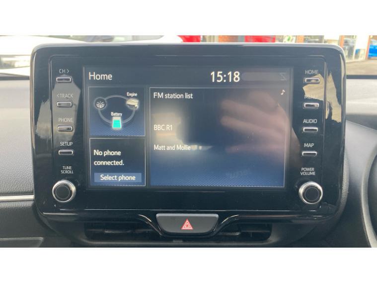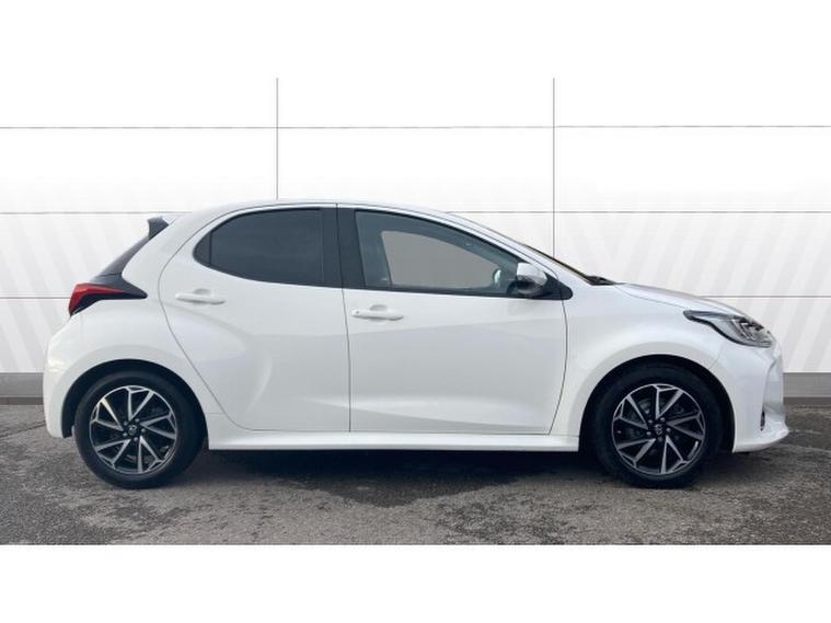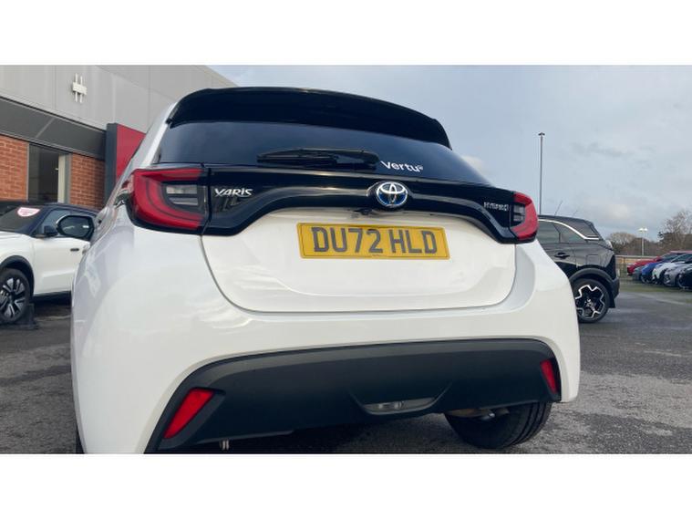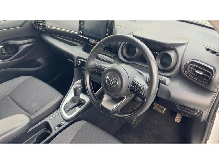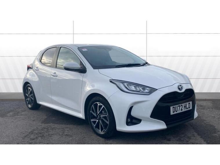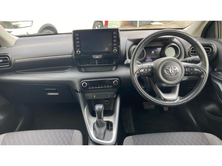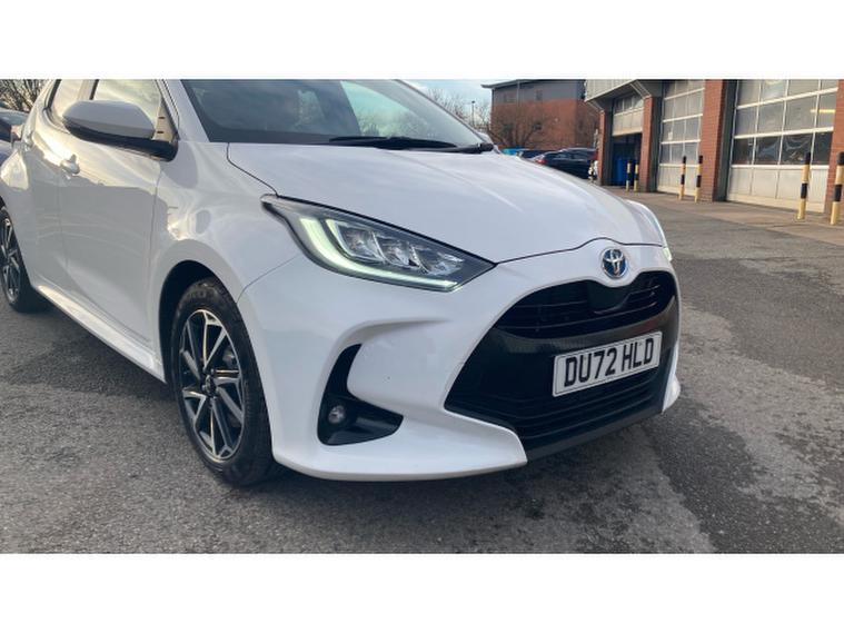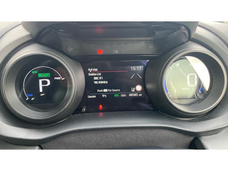 Toyota Yaris 1.5 Hybrid Design 5dr CVT Hybrid Hatchback, , The Toyota Yaris Hatchback 1.5 Hybrid Design 5dr CVT with 48, 581 miles is a smart, efficient, and highly refined compact hatchback that showcases Toyotas expertise in hybrid technology. Its 1.5‑, , litre hybrid powertrain delivers smooth, quiet performance with excellent fuel economy, making it ideal for both city driving and longer journeys. The CVT automatic gearbox enhances the relaxed driving experience, providing seamless acceleration and effortless operation in all conditions. The Design trim adds a stylish and contemporary feel, featuring sleek alloy wheels, LED headlights, a bold front grille, and Toyotas modern, aerodynamic body styling that gives the Yaris a confident presence on the road. Inside, the cabin is thoughtfully designed with high‑, , quality materials, supportive seating, and a clean, intuitive layout. The infotainment system includes a touchscreen display with Apple CarPlay, Android Auto, Bluetooth connectivity, and DAB radio, ensuring seamless integration for navigation, music, and communication. Practicality is strong thanks to the five‑, , door layout, a well‑, , shaped boot, and clever storage solutions throughout the cabin. Safety is a standout feature, with Toyota Safety Sense providing adaptive cruise control, lane‑, , keeping assist, automatic emergency braking, traffic sign recognition, and a reversing camera for added reassurance on every journey.