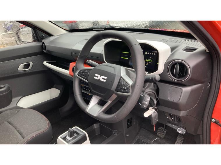 Dacia Spring 27kWh Expression 65 48kW 5dr Auto Electric Hatchback, , This 2025 Dacia Spring 65 Expression is practically new, having covered an incredibly low mileage of just 10 miles. As an all electric vehicle, it offers an efficient and environmentally conscious driving experience. The 27 kWh battery provides a maximum range of 140 miles when new, making it suitable for daily commutes and shorter journeys. Charging is convenient, with a full charge at home using a 7kW charger taking approximately 5 hours. For quicker top ups, public charging can take the battery from empty to 80% in just 1 hour. This Expression trim level comes equipped with rear parking sensors, including parking assistance, and manual air conditioning for your comfort.