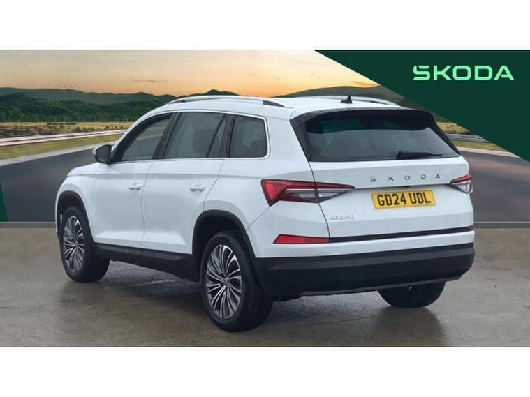 Skoda Kodiaq 1.5 TSI SE L Executive 5dr DSG [7 Seat] Petrol Estate, , Striking, spacious and exceptionally refined this Skoda Kodiaq Estate 1.5 TSI SE L Executive DSG 7 Seat, finished in crisp White with just 9, 235 miles, is the ultimate combination of style, practicality and premium specification. A 24 plate example with ultra-low mileage, this is a standout opportunity for anyone seeking a nearly-new seven-seat SUV without the new car wait.