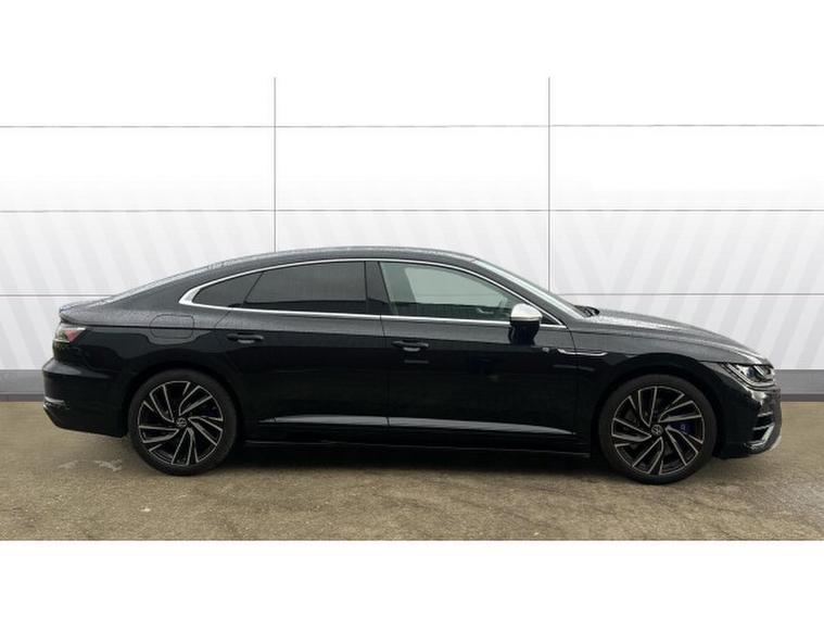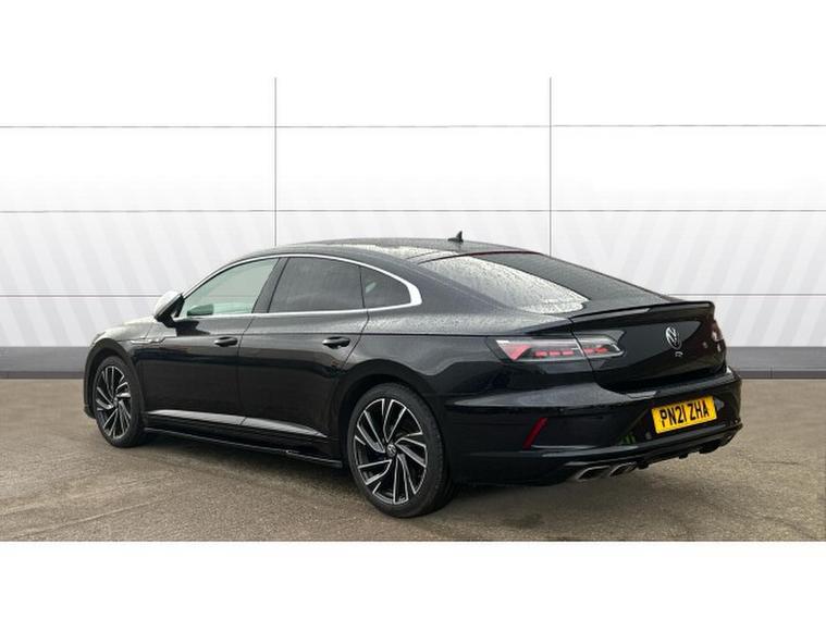 Volkswagen Arteon 2.0 TSI R 5dr 4MOTION DSG Petrol Hatchback, , The 2021 Volkswagen Arteon Fastback 2.0 TSI R 5dr 4MOTION DSG in black is a striking blend of performance, style, and refinement that confidently occupies the premium end of the executive fastback segment. Its sleek black finish accentuates the Arteons elegant, coupe‑, like silhouette and dramatic fastback profile, creating an instant impression of sophistication and presence. Bold lines, a wide stance and distinctive LED lighting lend this model an athletic yet timeless appearance that performs as well visually as it does on the road.