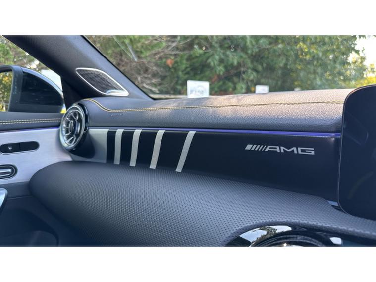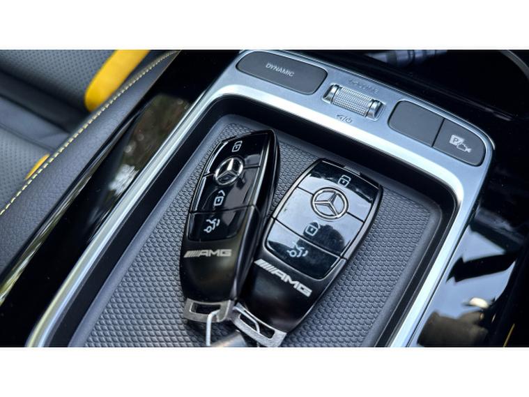 Inside the cabin is a masterclass in performance luxury. Two tone AMG leather in titanium grey pearl and black with yellow detailing offers heated seats with memory while the Panoramic Sliding Sunroof floods the interior with light. The MBUX system with Augmented Reality Satellite Navigation and Head Up Display places vital information directly in your line of sight while the Burmester surround sound system delivers concert hall audio quality. Wireless Mobile Phone Charging and a 360 Camera ensure everyday convenience is effortless.