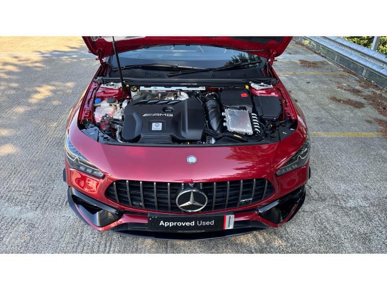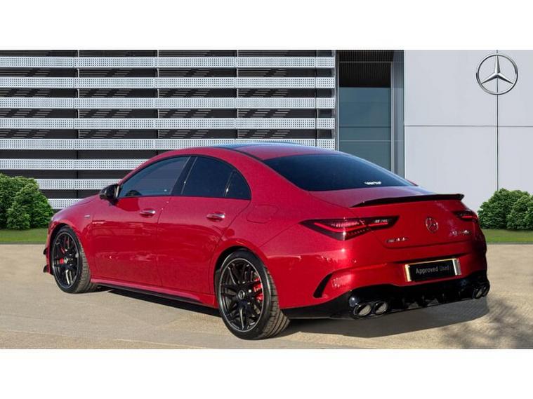 Mercedes-AMG CLA 45 S 4Matic+ Plus 4dr Tip Auto Petrol Saloon, , This 2024 Mercedes Benz CLA45 AMG S Plus Coupe is a firecracker of a four door coupe that blends supercar pace with everyday usability and jaw dropping design. Finished in striking MANUFAKTUR Patagonia red Metallic and sitting proudly on 19 Inch AMG alloy wheels this is a car that turns heads before it even starts.