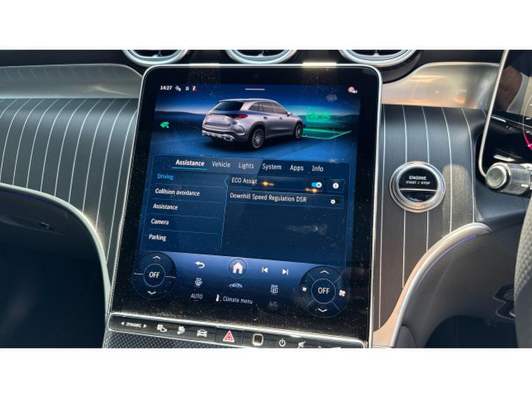Comfort is where this GLC truly excels. The Black heated leather seats with memory provide long distance support, complemented by the panoramic sliding sunroof that floods the cabin with natural light. MBUX satellite navigation, Apple CarPlay and the Burmester 3D surround sound system ensure every journey is both connected and entertaining, while wireless mobile phone charging keeps the cabin free of clutter.