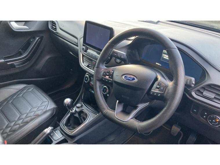 Ford Puma 1.0 EcoBoost Hybrid mHEV ST-Line Vignale 5dr Petrol Hatchback, , vertu Ford Durham are delighted to have this low mileage, 1 owner from new, Ford Puma ST-Line Vignale which looks stunning in Agate black metallic paint. The Vignale trim level is the higher-end that blends sporty styling with premium equipment. It sits above the standard ST-Line and ST-Line X trims and adds a range of comfort, technology and styling features. All our vehicles at Vertu Motors come fully prepared with our peace of mind Main Dealer guarantee. Every vehicle is fully prepared both mechanically and cosmetically up to the highest standard which even includes having any tyre replaced that has less than 3mm tread depth (legal limit is 1.6mm). Every vehicle will have a minimum of 9 months MOT remaining and you will not have to service the vehicle for at least 6 months or 6000 miles. We ensure that you will have a minimum of 2 keys and to give you even further reassurance we also supply you with a 3 months complimentary warranty and a 14-day money back guarantee. Our vehicles also come with a full HPI vehicle check assuring you that your new vehicle will have no registered accident claims reported, or any outstanding finance, it also shows the vehicle has not been imported. In addition to this we also do a full Government VOSA report check to verify the mileage on all cars over 3 years old. This service comes free of charge to all our customers unlike other main dealers who charge you an admin fee for this service. We also offer nationwide delivery on all our vehicles, so call today to arrange a viewing.