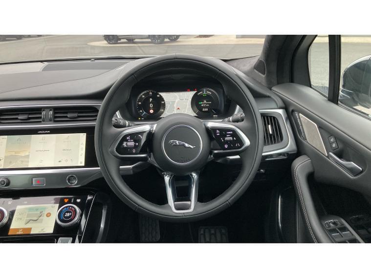 Jaguar I-Pace 294kW EV400 HSE Black 90kWh 5dr Auto 11kW Charger Electric Estate, , Vertu JLR Bolton are proud to offer this stunning Jaguar I-Pace EV400 HSE Black finished in Borasco Grey metallic with Ebony duo leather interior. This two owner car has been immaculately looked after by its former owners and comes with a Full Service History with 1 former JLR services completed which was last done November 2024 at 20879 miles. This car comes with optional secure tracker (subscription required), 20 5068 diamond turned alloys, tailgate / boot spoiler and comes with some great standard features which include heated steering wheel, fixed panoramic sunroof, adaptive cruise control, 20 inch gloss black alloys, dual zone climate control, LED headlights, auto lights and wipers, DAB radio, Bluetooth, Apple car play, electric memory cooled and heated front seats, keyless entry, power tailgate, heated windscreen, power fold mirrors, reverse camera, push button start, steering wheel audio controls, land departure warning, cubby box, interactive driver display and much more. This car is ready to view, test drive and drive away today and comes as part of the Approved JLR programme which includes 12 months warranty, 12 months roadside assistance, MOT test warranty and 165 multi point inspection as part of purchase.