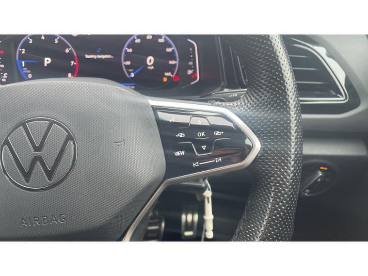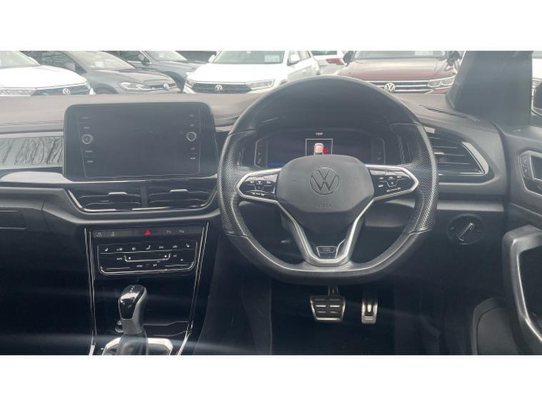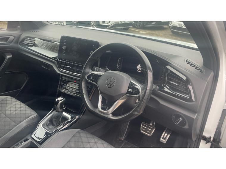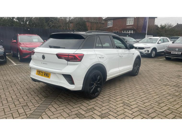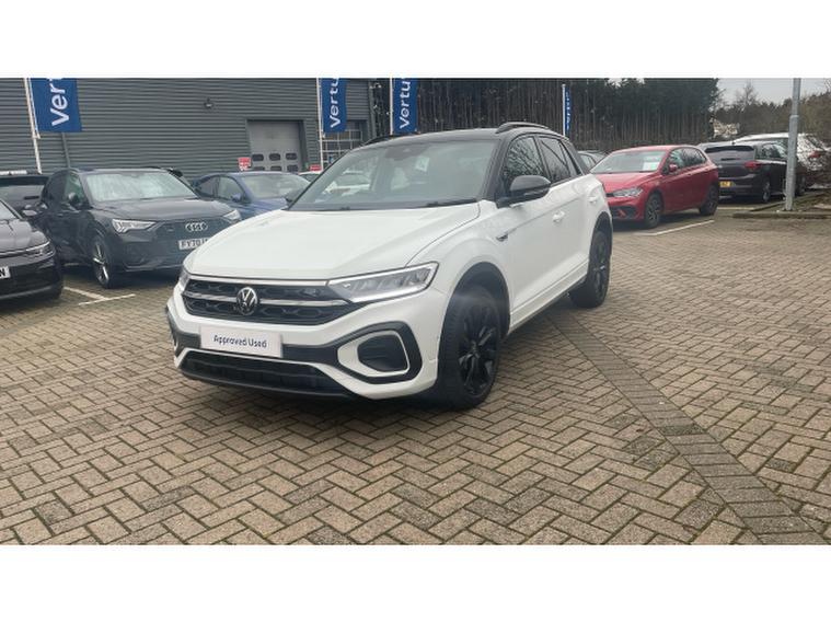 Volkswagen T-Roc 1.5 TSI R-Line 5dr DSG Petrol Hatchback, , Now available at Vertu Volkswagen Nottingham South, the Volkswagen T-Roc Hatchback 1.5 TSI R-Line 5dr DSG with Black Pack combines sporty, head-turning design with practical SUV versatility and efficient performance, powered by the responsive 1.5 TSI engine paired with the smooth DSG automatic gearbox for a refined and confident drive. The R-Line trim enhanced further by the Black Pack adds striking black exterior styling, distinctive alloy wheels, and premium interior touches, giving the T-Roc an even bolder, more aggressive road presence. Inside, youll enjoy a digital instrument cluster, intuitive touchscreen infotainment system with seamless smartphone connectivity, Adaptive Cruise Control, Lane Assist, LED headlights, front and rear parking sensors, and automatic climate control to elevate comfort and convenience on every journey. The vehicle comes with tyres replaced if under 3mm, a minimum of 9 months MOT, no servicing costs for 6 months or 6, 000 miles, and includes two keys for added assurance. As part of the Volkswagen Approved Used programme, youll also benefit from a 12-month Volkswagen warranty, 12 months roadside assistance, a comprehensive multipoint inspection, full history and mileage checks, a 30-day/1, 000-mile exchange policy, free 5-day insurance, and access to flexible finance options tailored to your needs.