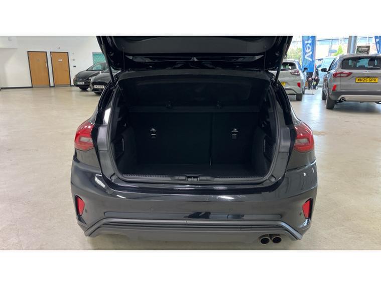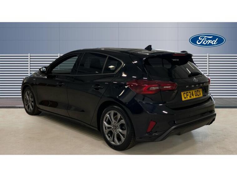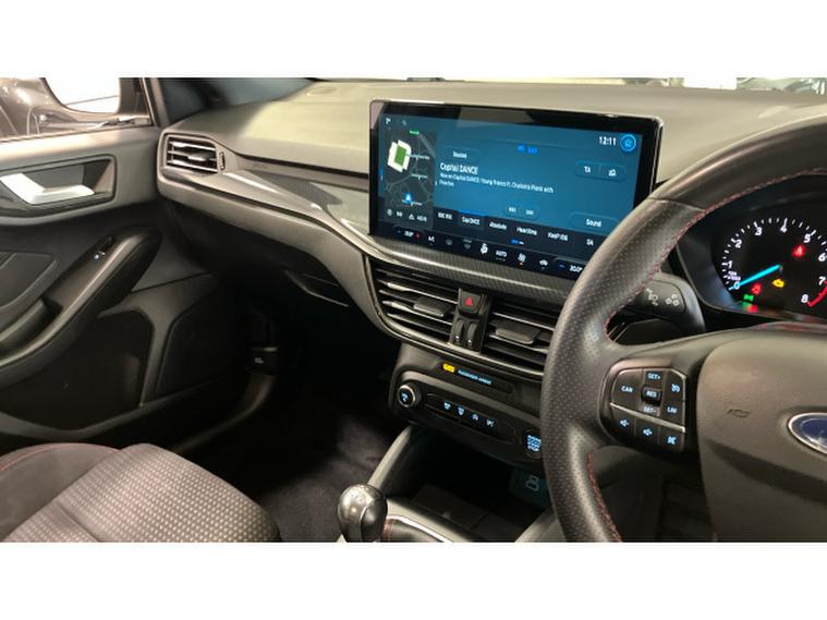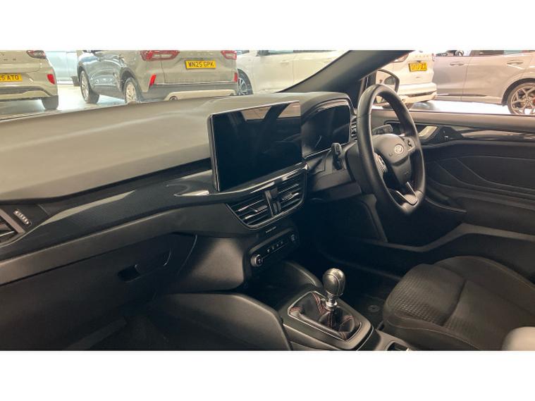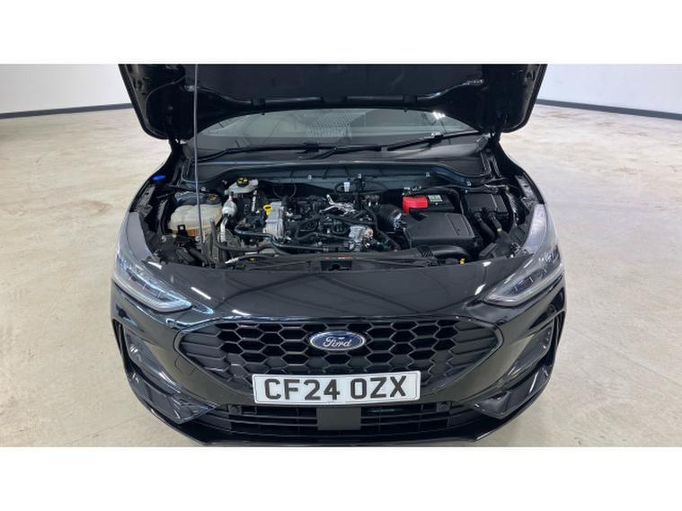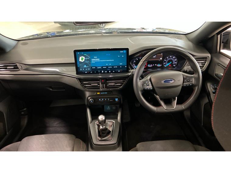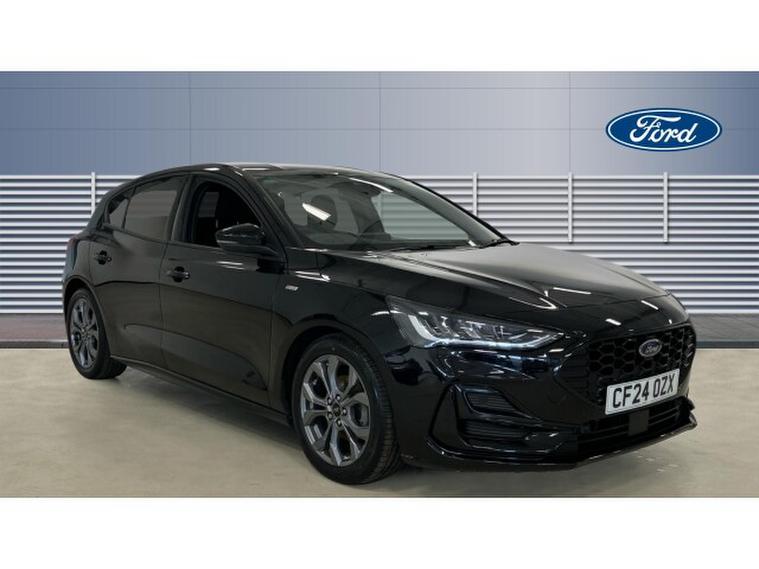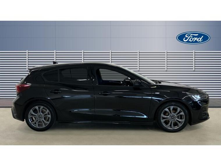 Ford Focus 1.0 EcoBoost Hybrid mHEV ST-Line 5dr Petrol Hatchback, , Thank you for enquiring on this lovely looking Ford Focus ST-Line finished in black metallic paint with only 1 owner from new and a full service history, this is perfect for a driver looking for a sporty family size car with low running costs, ST-Line delivers all the practicality of the Ford Focus, with the additional eye-catching aesthetics of a performance-line vehicle. Large rear spoiler, body styling kit, meshed front grilles, upgraded alloy wheels, and sports suspension all contribute to the cars unique blend of usability and head-turning good looks. This distinctively stylish image echoes through the Focus interior, emphasising the sports inspired character of its design.