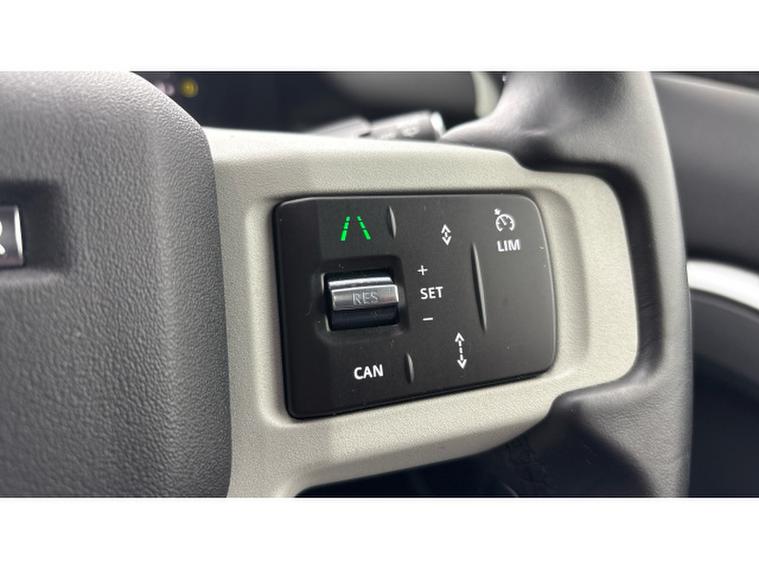 Features include the Pivi Pro infotainment system with navigation, digital driver display, heated front seats, leather steering wheel, keyless entry, adaptive cruise control, front and rear parking sensors with rear camera, LED headlights with signature DRL, selectable Terrain Response driving modes and power tailgate.