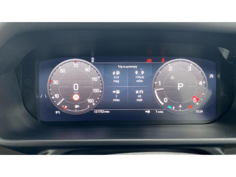 Specification includes the Pivi Pro infotainment system, digital driver display, Meridian sound system, heated electric front seats with memory, keyless entry, adaptive cruise control, front and rear parking sensors with 3D surround camera, LED Matrix headlights with signature DRL, Terrain Response with configurable driving modes, power tailgate and advanced driver assistance systems.