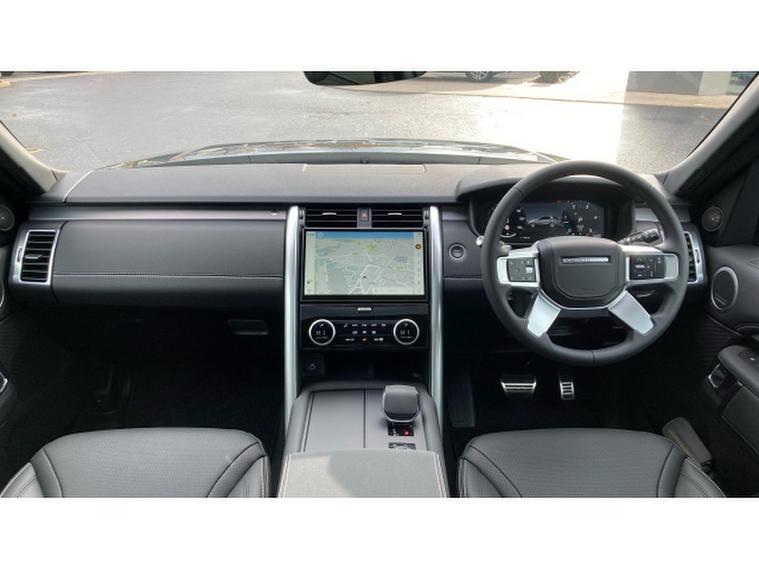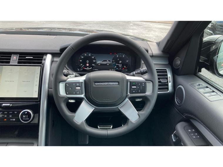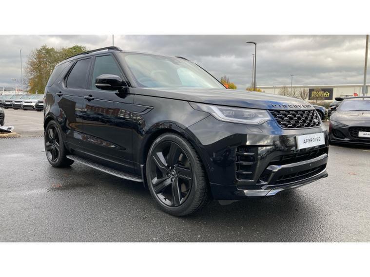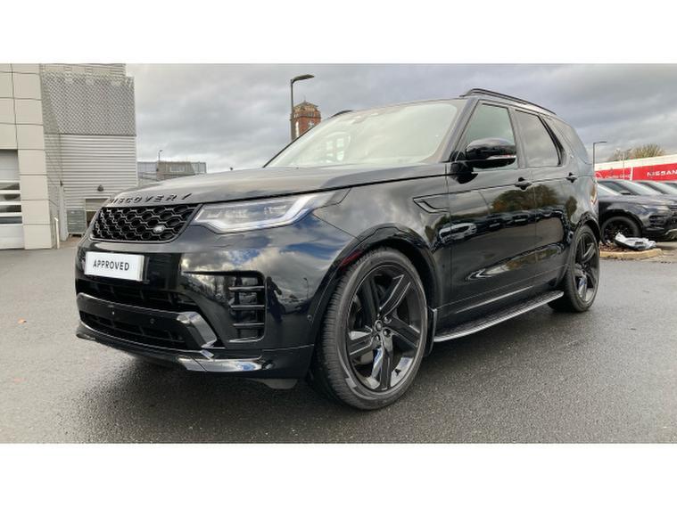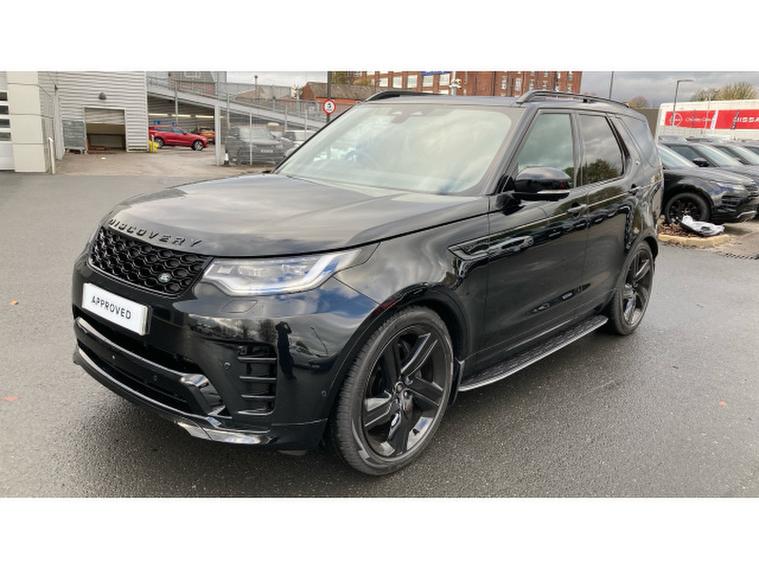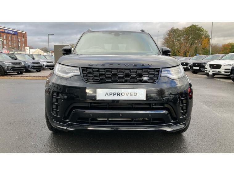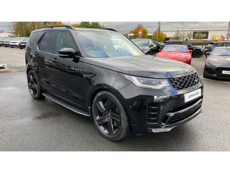 Land Rover Discovery 3.0 D350 Dynamic HSE 5dr Auto Diesel Station Wagon, , Vertu JLR Bolton are proud to offer this stunning Discovery 3.0 D350 Dynamic HSE finished in Santorini Black metallic with matching ebony Windsor leather interior. This is one of our current demonstrators that has been made available for sale. This car comes packed full of options which include 22 inch gloss black alloys and black pack, fixed sidesteps, and mudflaps. Standard features include touchscreen with Pivi Pro Navigation, 3D surround camera, heated and cooled front seats, electric memory seats, privacy glass, adaptive cruise control, heated rear seats, three zone climate control, interactive driver display, heated windscreen, keyless entry, power tailgate, 7 seats, air suspension, terrain response, hill descent control, stop/start, push start button, fixed panoramic sunroof, Meridian sound system, trip computer, LED headlights, auto lights and wipers, steering wheel audio controls, Isofix, DAB radio, Bluetooth, Apple car play and much more. This car is ready to view, test drive and drive away today and comes as part of the Approved JLR Programme which includes balance of manufacturer warranty and roadside assistance until October 2028, MOT test warranty, 165 multi point inspection and complimentary experience day as part of purchase.