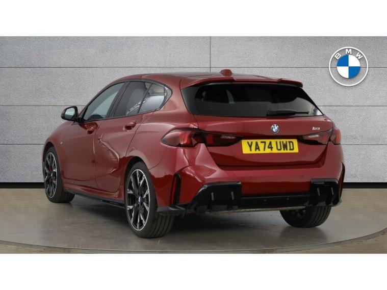 BMW 1 Series 123 xDrive M Sport 5dr Step Auto Petrol Hatchback, , With exceptionally low mileage for its age, this 2025 BMW 1 Series 123i M Sport presents a remarkable find. This Euro 6 compliant model boasts a powerful 2.0 litre petrol hybrid engine paired with a sophisticated four wheel drive system, ensuring confident handling in all conditions. The M Sport trim enhances its dynamic appeal, while the inclusion of LED headlights and the BMW Live Cockpit Plus with Bluetooth connectivity offer both style and modern convenience.