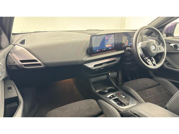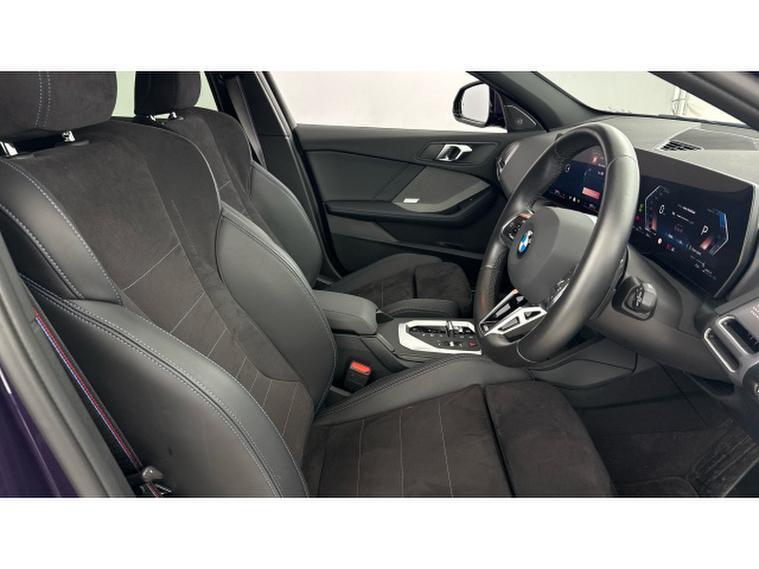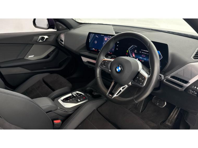 BMW 1 Series 120 M Sport 5dr Step Auto Petrol Hatchback, , This 2025 BMW 1 Series 120i M Sport is a BMW manufacturer approved vehicle, boasting a single owner from new. Finished in the sporty M Sport trim, this Euro 6 compliant model features a 1.5 litre petrol hybrid engine, offering an efficient and responsive driving experience. It comes equipped with the desirable Technology Pack, which includes automatic LED headlights, keyless entry, and wireless phone charging, alongside the Parking Assistant package with front and rear sensors and a rear camera for effortless manoeuvring. Further enhancing its appeal is the Sun Protection Glass, adding a touch of privacy and comfort.