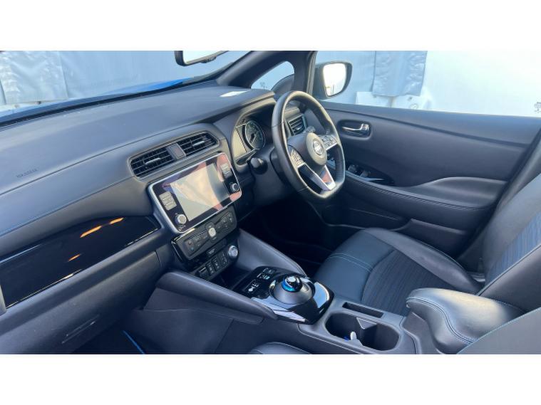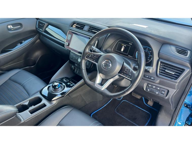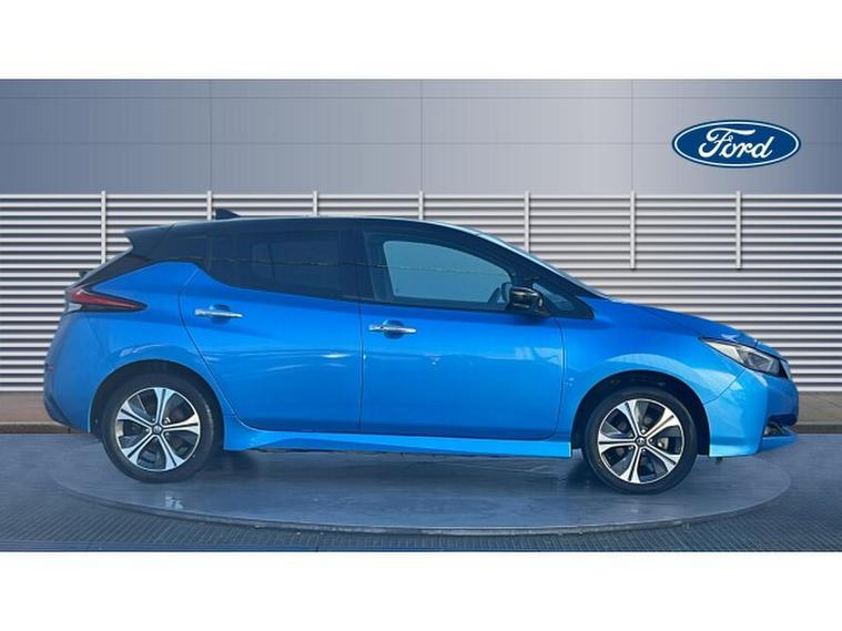 Nissan LEAF 160kW e+ N-Connecta 62kWh 5dr Auto Electric Hatchback, , Gloucester Ford have this Nissan Leaf 160kW e+ N-Connecta 62kWh Auto finished in Vivid Blue. The Nissan Leaf Hatchback 160kW e+ N-Connecta 62kWh 5dr Auto in striking Vivid Blue is an exceptional example of how modern electric driving can be exciting, practical, and stylish. From the moment you approach it, the vibrant Vivid Blue paintwork and dynamic hatchback silhouette make a bold statement, this isnt just a car, its a smart, forward-thinking way to drive. Inside, the Leaf N-Connecta impresses with a well-designed, comfortable cabin that places everything you need within easy reach. The automatic transmission ensures smooth, effortless driving from the very first journey, while the 160kW electric powertrain delivers responsive acceleration and whisper-quiet performance that make every trip a pleasure. The generous 62kWh battery gives excellent range and efficiency, perfect for daily commutes, grocery runs, and longer adventures without the need to recharge frequently. Technology is a standout on this model. The built-in sat nav system provides intuitive, up-to-date route guidance that keeps journeys simple and stress-free, whether youre exploring new routes or navigating busy urban roads. Parking and low-speed manoeuvres are made easier and safer thanks to the front and rear sensors that alert you to nearby obstacles, giving you confidence in tight spaces. The rear view camera adds an extra layer of assurance, offering a clear, real-time view of whats behind you when reversing, a real asset in crowded car parks and driveways. Practicality is at the heart of the Leafs design. The hatchback layout offers flexible cargo space that adapts to your lifestyle, whether youre heading out with luggage, shopping bags, or weekend gear. Combined with comfortable seating and thoughtful storage throughout the cabin, it creates a truly user-friendly environment. In every aspect, the Nissan Leaf 160kW e+ N-Connecta in Vivid Blue seamlessly blends cutting-edge electric performance with everyday usability and smart features, a joy to drive and a joy to own.