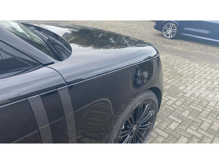 This vehicle has been specified with a strong selection of optional extras, including the Shadow Exterior Pack, 23-inch Style 1075 alloy wheels finished in Gloss Black, sliding panoramic roof, privacy glass, Natural Black Birch veneer, and Ebony Morzine headlining, enhancing both its road presence and interior ambience.