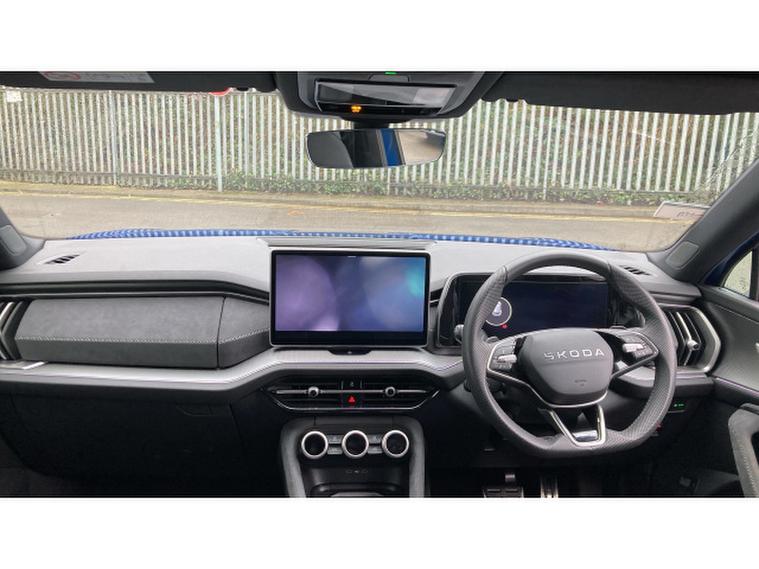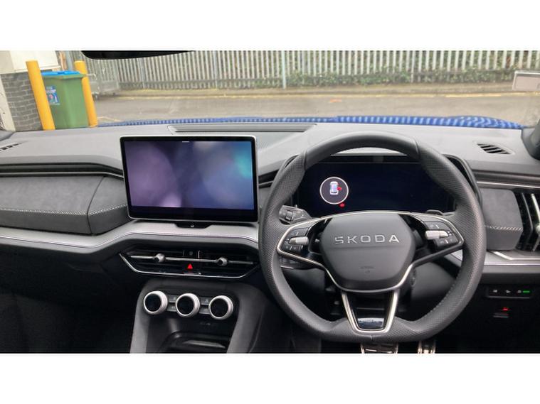 Skoda Kodiaq 2.0 TDI 193 SportLine 4X4 5dr DSG [7 Seat] Diesel Estate, , The 2025 koda Kodiaq SportLine TDI 4x4 positions itself as a rare blend of rugged capability and refined SUV-style presence, anchored by a 2.0-litre TDI diesel engine (approx. 193 PS) paired with a smooth DSG automatic and four-wheel drive for confident performance roughly 062 mph in about 8 seconds with combined economy in the mid-40s mpg bracket and strong torque that suits motorway cruising or loaded family trips.Visually, the SportLine trim lifts the Kodiaqs stance with bespoke sporty touches such as black roof rails, gloss black styling accents and distinctive alloy wheels, giving this seven-seat SUV an assertive road presence.Inside, a generous, flexible cabin complete with seven-seat flexibility and clever storage solutions makes it a genuinely practical choice for larger families or those who need to move people and luggage without compromise, while modern tech like wireless charging, parking aids, navigation and connectivity systems enhances everyday convenience.Rounded out by a comprehensive safety and driver-assist suite, the Kodiaq SportLine 4x4 feels like a polished all-weather companion that marries SUV practicality with a dynamic edge.