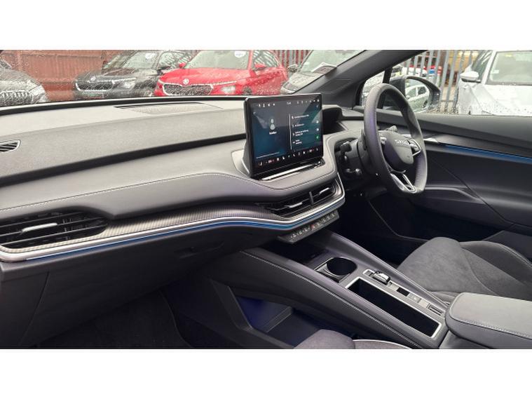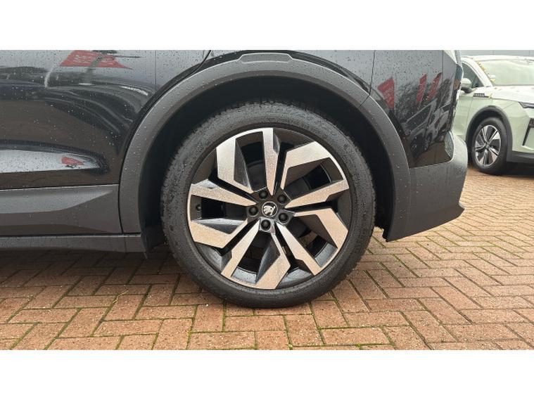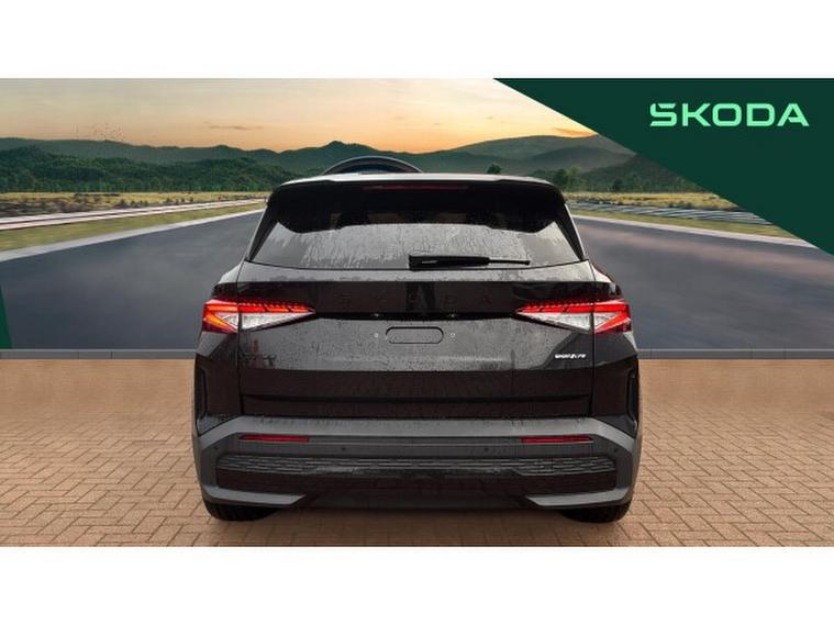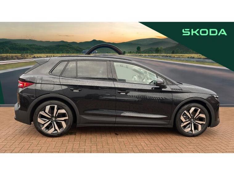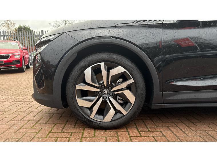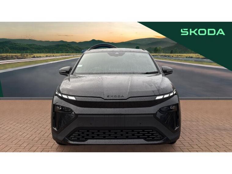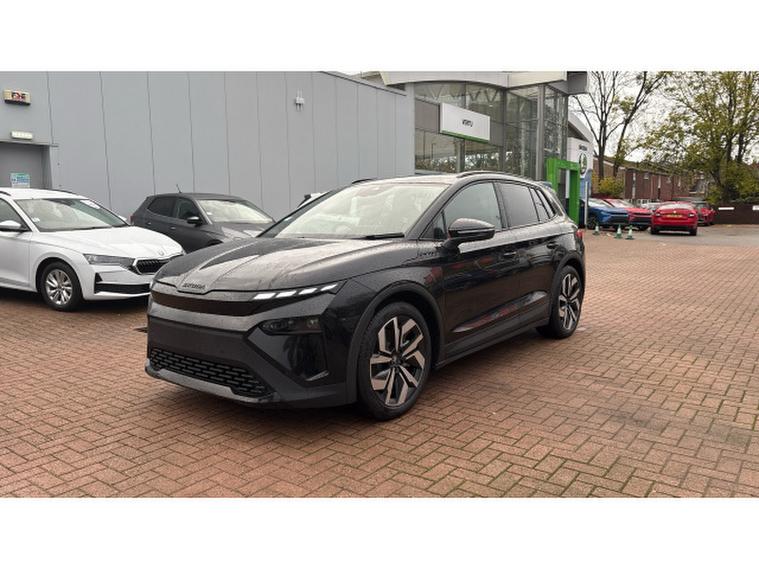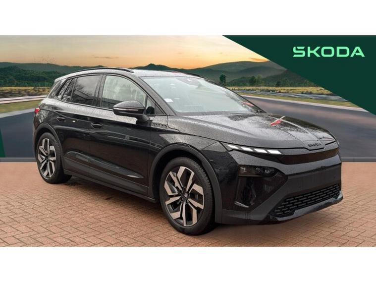 Skoda Elroq 210kW 85 SportLine 82kWh 5dr Auto Electric Estate, , The Elroq SportLine with the 85 pack delivers 210 , kW of power, translating into a strong 286 hp / 545 Nm torque output.That power setup helps it sprint from 062 , mph in about 6.6 seconds quick for an electric estate.he SportLine trim emphasizes sporty styling: 20-inch black alloy wheels, gloss-black trim on the roof rails, door mirrors, and tailgate, plus a sport bumper.For a more engaging feel, progressive dynamic steering is standard on this 85‑, battery model, koda also adds sport suspension, giving the ride a firmer, more responsive edge.The 2025 koda Elroq 210 , kW 85 SportLine is a standout EV estate: it delivers serious performance, high electric range, and premium touches all wrapped in a practical, stylish body. For drivers who want more than just a city car who demand space, speed, and style this Elroq variant is a very compelling option.
