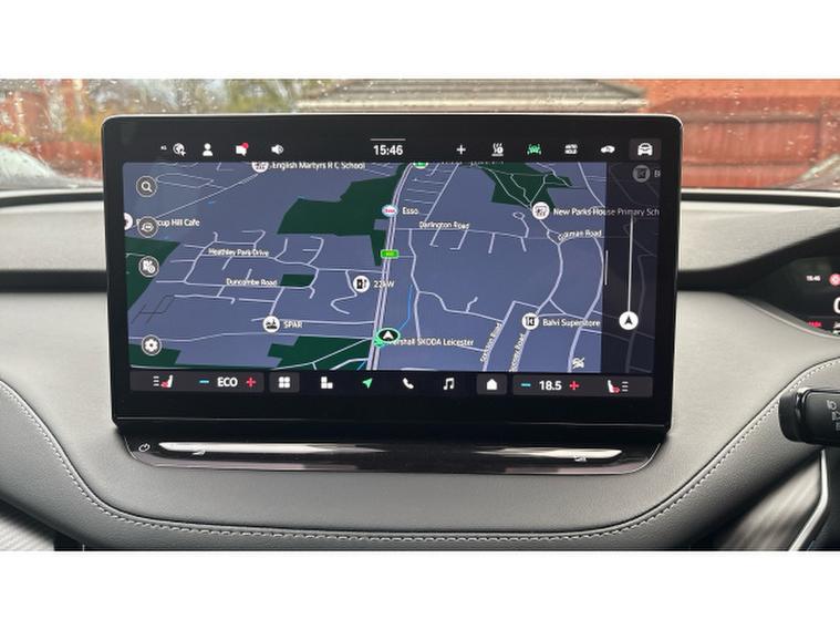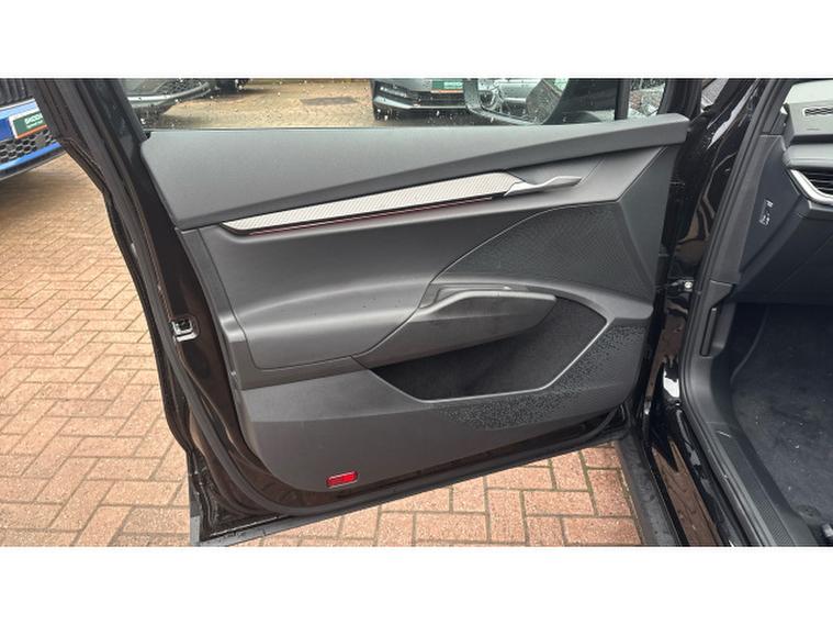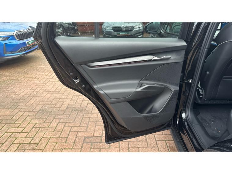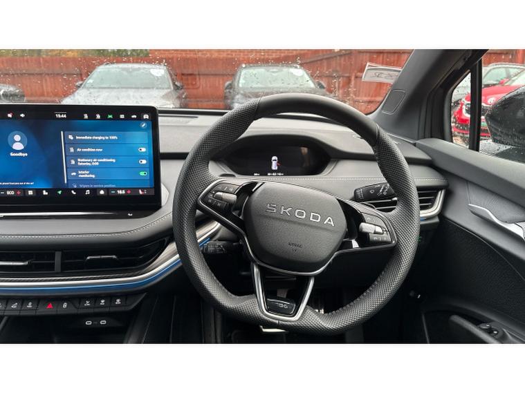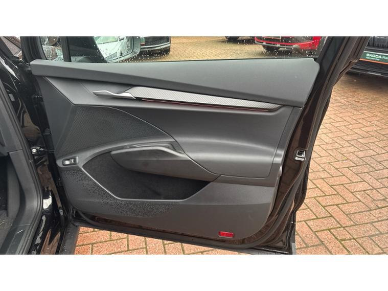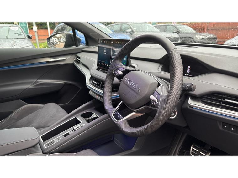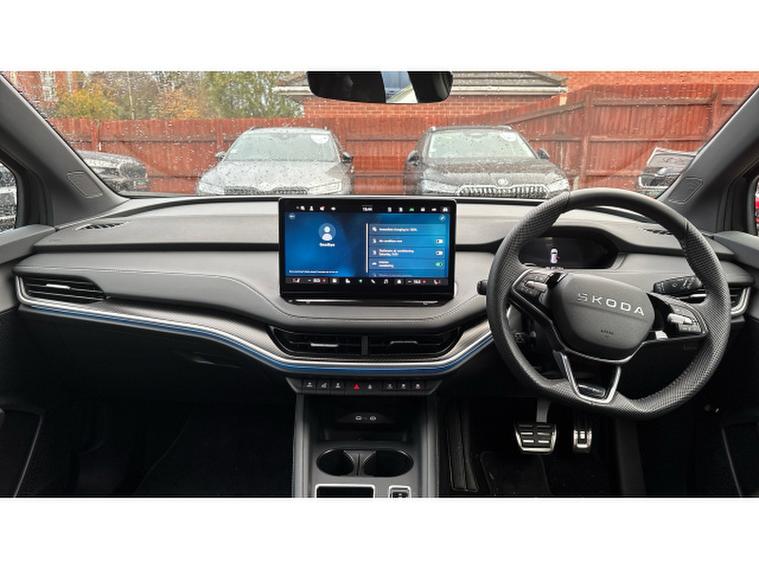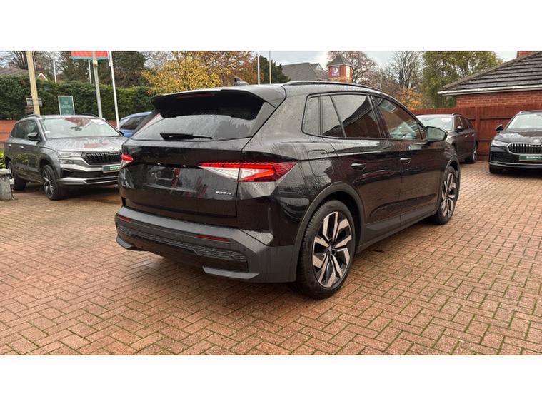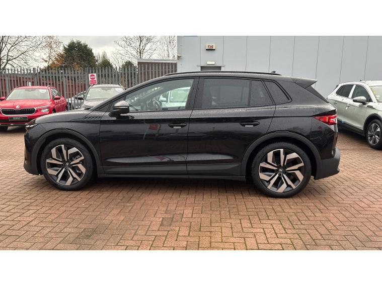 Skoda Elroq 210kW 85 SportLine 82kWh 5dr Auto Electric Estate, , The Elroq SportLine with the 85 pack delivers 210 , kW of power, translating into a strong 286 hp / 545 Nm torque output.That power setup helps it sprint from 062 , mph in about 6.6 seconds quick for an electric estate.he SportLine trim emphasizes sporty styling: 20-inch black alloy wheels, gloss-black trim on the roof rails, door mirrors, and tailgate, plus a sport bumper.For a more engaging feel, progressive dynamic steering is standard on this 85‑, battery model, koda also adds sport suspension, giving the ride a firmer, more responsive edge.The 2025 koda Elroq 210 , kW 85 SportLine is a standout EV estate: it delivers serious performance, high electric range, and premium touches all wrapped in a practical, stylish body. For drivers who want more than just a city car who demand space, speed, and style this Elroq variant is a very compelling option.