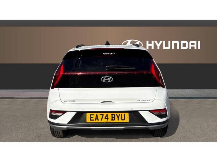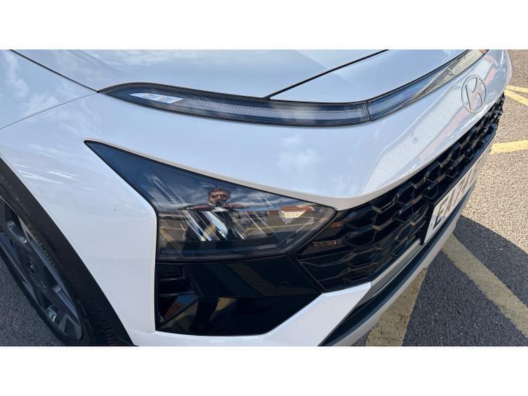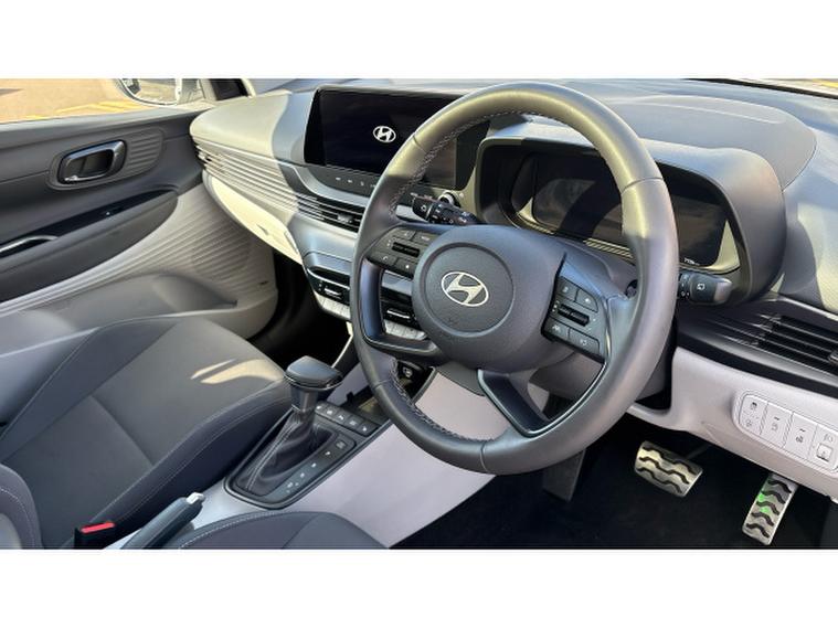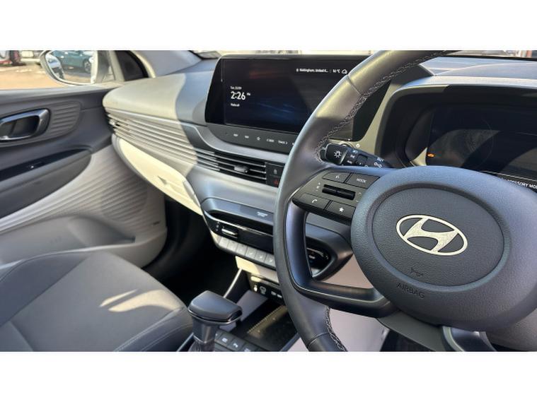 Hyundai BAYON 1.0 TGDi Ultimate 5dr DCT Petrol Hatchback, , This 2024/74-registered Hyundai Bayon Hatchback 1.0 TGDi Ultimate 5dr DCT in white has covered just 7, 786 miles and represents a superb example of a well-equipped compact crossover, available to pop in and see here at Hyundai Peterlee. Powered by a 1.0-litre turbocharged T-GDi petrol engine with a smooth 7-speed dual-clutch automatic transmission, it delivers around 100 bhp with a responsive drive and efficient performance suited to both urban and longer journeys, returning strong fuel economy and low running costs. The Ultimate trim brings a generous specification including 17″, alloy wheels, a quality BOSE premium sound system, wireless phone charging, smart key keyless entry with engine start/stop button, Blind Spot Collision Warning and Lane Follow Assist for added safety and convenience. Inside, youll find a 10.25″, digital driver display and touchscreen infotainment system with Apple CarPlay and Android Auto, automatic climate control, heated front seats, heated steering wheel and a panoramic feel thanks to the glass sunroof with electric tilt and slide. Practicality is strong with generous boot capacity and a comfortable five-seat cabin. With Hyundais high-level safety systems and attractive specification, this Bayon offers excellent everyday versatility and peace of mind for its next owner. ([hyundai.news][1])