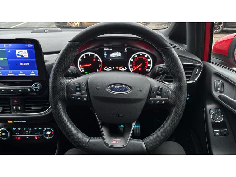 Ford Fiesta ST 1.5 EcoBoost ST-2 3dr Petrol Hatchback, , This Ford Fiesta Hatchback 1.5 EcoBoost ST-2, finished in Race Red and showing just over 35, 500 miles, combines sporty performance with everyday practicality in one of Ford's most engaging small hatchbacks. Powered by a 1.5-litre EcoBoost petrol engine paired with a smooth manual or automatic transmission, it delivers lively acceleration, sharp handling and excellent driver feedback — perfect for both daily commutes and spirited weekend drives. The ST-2 trim enhances the experience with a sportier suspension setup and a generous level of specification including a touchscreen infotainment system with Apple CarPlay and Android Auto, navigation, rear parking sensors with camera, automatic climate control, cruise control and stylish alloy wheels. With its blend of dynamic performance, well-equipped interior and striking Race Red paint, this Fiesta ST-2 offers an exciting and versatile choice in the compact hatchback segment. A personalised video presentation is available on request.