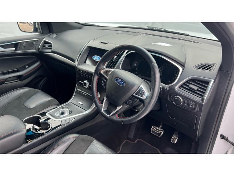 Ford Edge 2.0 EcoBlue 238 ST-Line 5dr Auto Diesel Estate, , Gloucester Ford have this 1 owner from new Ford Edge 2.0 EcoBlue 238 ST-Line Auto finished in Oxford White. This Ford Edge ST-Line Auto is an exceptional example of how a premium SUV should blend dynamic performance, thoughtful design, and everyday practicality. At the heart of this model is the powerful 2.0-litre EcoBlue 238 PS diesel engine paired with an advanced eight-speed automatic transmission and intelligent all-wheel drive, delivering smooth, responsive power and confident performance in all driving conditions. One of the standout features that elevates the driving experience is the panoramic roof. This large glass roof fills the cabin with natural light, creating a bright and airy atmosphere that enhances journey comfort for both driver and passengers. Whether cruising on an open road or navigating city streets, the panoramic roof provides a sense of luxury and connection to the outdoors that few vehicles achieve. Safety and convenience are front and centre in the Ford Edge. The front and rear sensors work seamlessly with the rear view camera to make parking, reversing, and tight manoeuvres effortless. These systems give drivers greater visibility and peace of mind, whether youre negotiating a busy car park or pulling into a driveway. Inside, the ST-Line trim brings sporty touches and thoughtful appointments that make every journey enjoyable. With spacious seating, supportive suspension, and advanced driver aids, the Edge delivers a refined ride thats both comfortable on long journeys and confident in everyday use. Overall, the Ford Edge ST-Line Auto impresses with its blend of potent performance, upscale features like the panoramic roof, and smart safety technology like parking sensors and the rear camera, a fantastic choice for drivers seeking capability, comfort, and style in one compelling SUV.