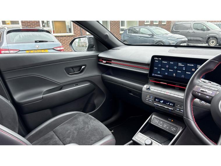 The N Line S trim adds sporty styling details, but the Konas true magic lies in its everyday usability. The generous boot space is ideal for pushchairs, sports bags or a big supermarket run, while split folding rear seats mean weekend getaways are effortlessly accommodated. The elevated driving position offers superb visibility, perfect for school runs and motorway miles alike.