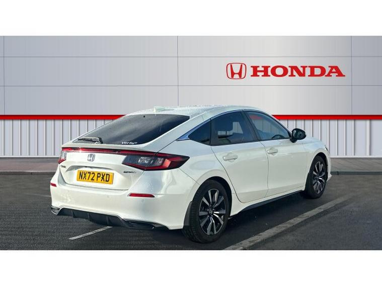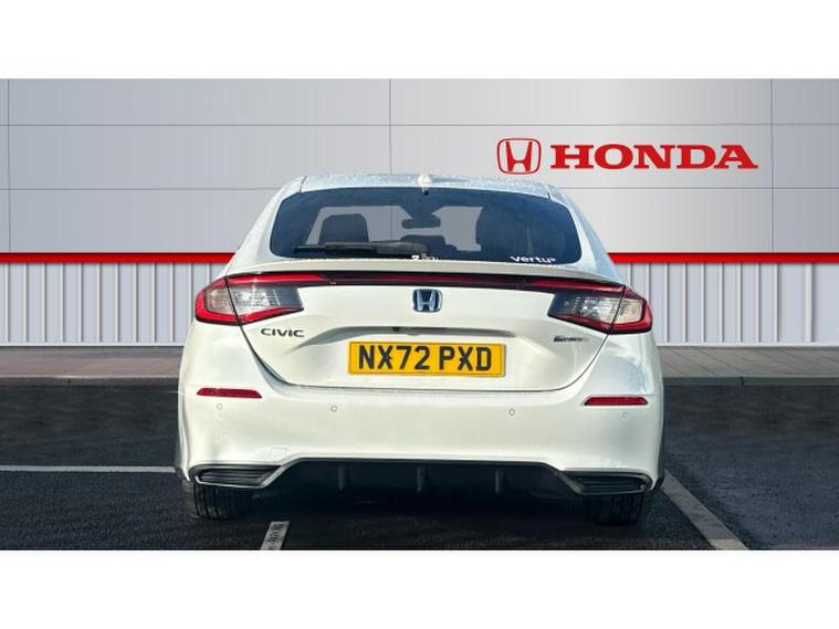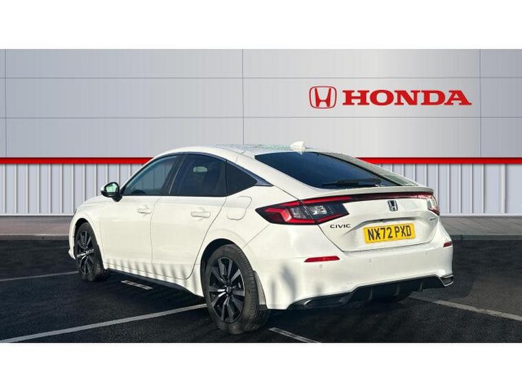 Honda Civic 2.0 eHEV Elegance 5dr CVT Hybrid Hatchback, , The 2024 Honda Civic Hatchback 2.0 e:HEV Elegance in white is a refined and sophisticated compact car that perfectly balances dynamic performance, advanced hybrid efficiency, and everyday practicality. Its crisp white finish accentuates the Civics bold, modern lines and athletic stance, giving it a fresh, premium presence on the road. With its sleek profile, sculpted contours and distinctive front grille, this Civic model stands out as both stylish and purposeful.