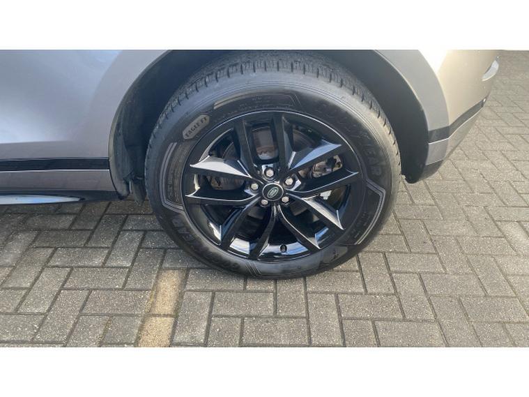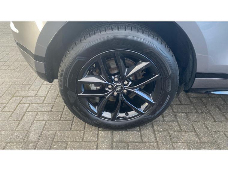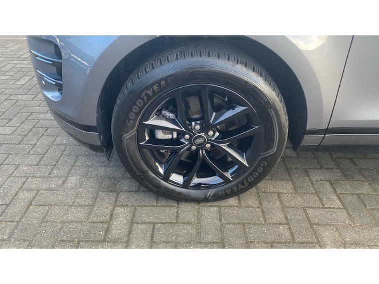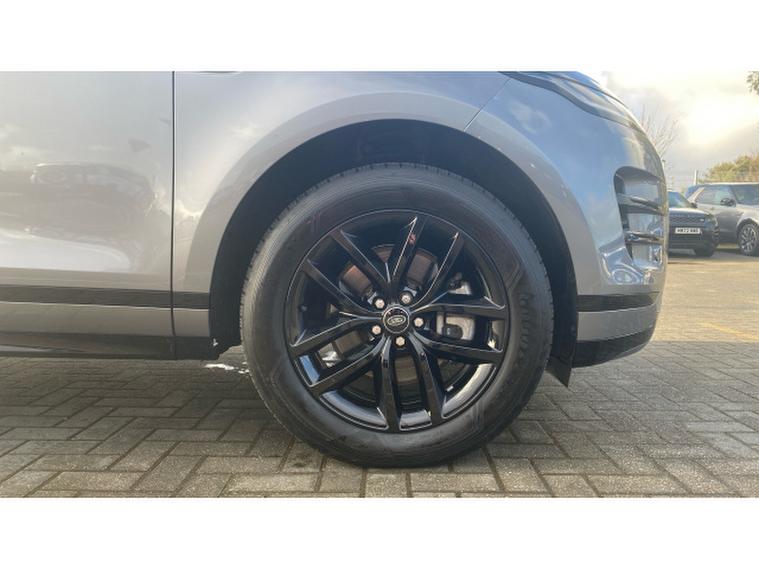 This Evoque is equipped with Reduced Section Steel Spare Wheel, 19 Style 5136 Gloss Black alloy wheels, Fixed Panoramic Roof, Privacy Glass, and Black Exterior Pack, enhancing both its styling and practicality.