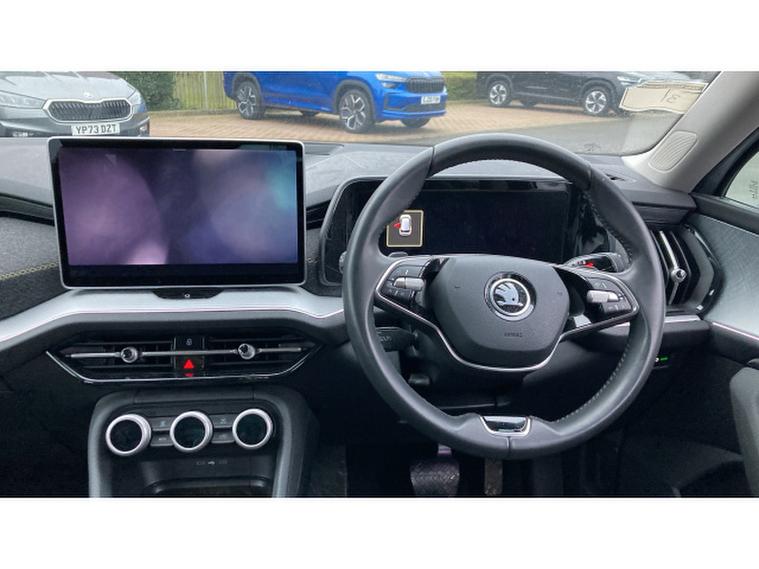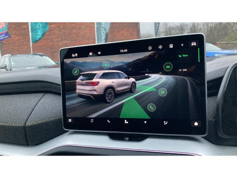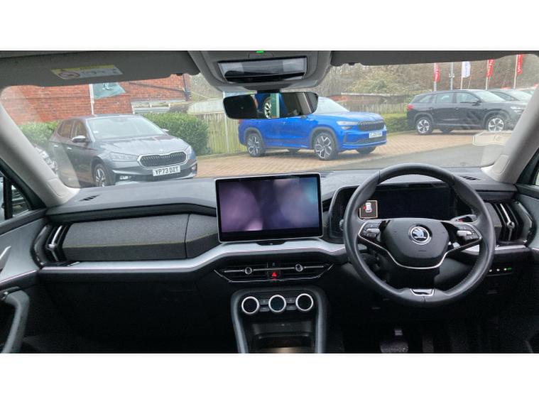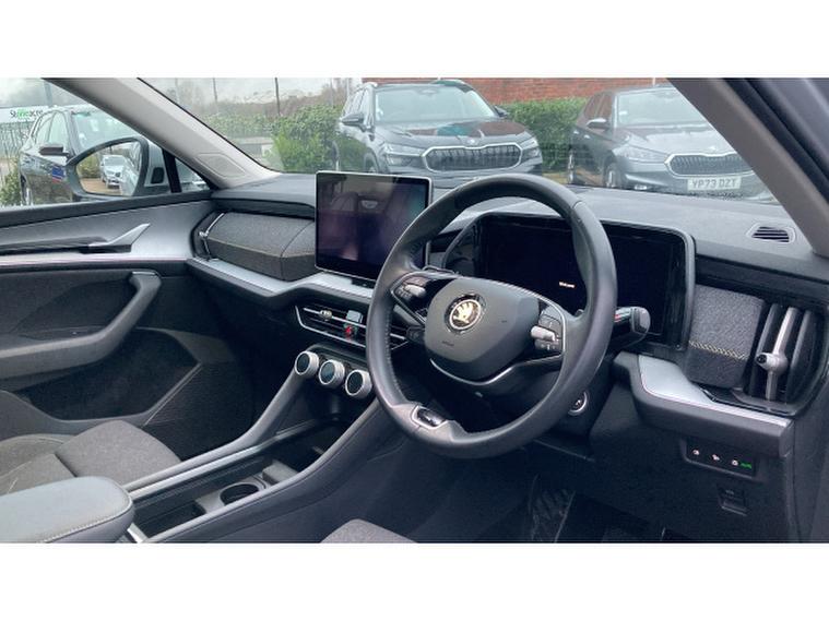 Skoda Kodiaq 1.5 TSI e-TEC SE 5dr DSG [7 Seat] Petrol Estate, , The 2025 koda Kodiaq Estate 1.5 TSI e-TEC SE L 5-door DSG [7 Seat] quietly stakes its claim as a sensible and versatile big family SUV, combining kodas clever packaging with a mild-hybrid 1.5-litre TSI petrol engine and smooth DSG automatic for around 150 PS, a 062 mph close to 9.9 seconds and combined economy in the mid-40s mpg bracket an efficient balance for long motorway miles and daily school runs alike.Inside, the generously proportioned seven-seat cabin delivers genuine flexibility with ISOFIX child-seat fittings across multiple rows and a practical luggage area that still offers useful cargo space even with all seats deployed, making it ideal for families, holidays or big-town errands.The SE L trim brings a strong standard specification including a 13″, , , touchscreen with satellite navigation, rear-view camera, front/rear parking sensors, tri-zone climate control, Bluetooth, wireless charging and modern driver-assist systems such as lane assist, blind-spot detection and traffic-sign recognition that bolster confidence and comfort on every journey.With a composed ride, thoughtful tech and the flexible seven-seat layout thats become a koda hallmark, this Kodiaq blends space, efficiency and usability into a compelling proposition for families seeking a spacious SUV without unnecessary fuss.