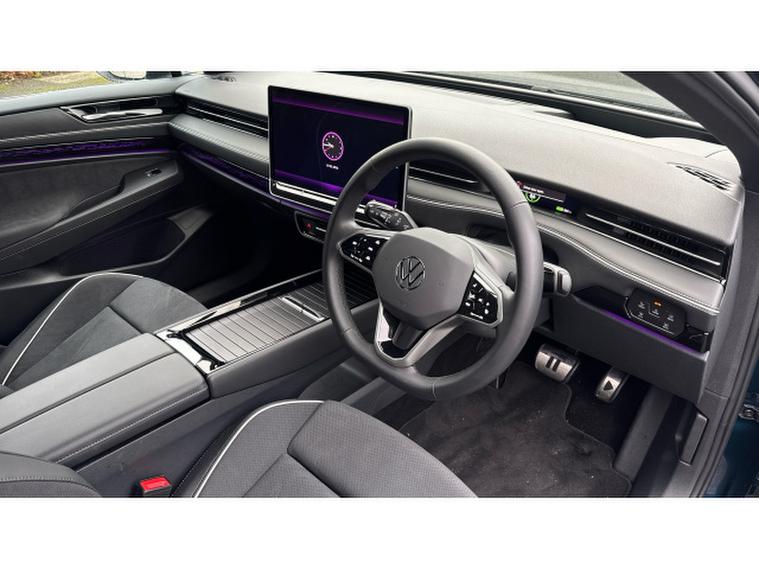 This vehicle also benefits from the Interior Pack Plus, featuring electric memory seats for both front passengers, ventilated massage front seats, heated rear seats and a premium Harman Kardon sound system. The Exterior Pack Plus adds illuminated Volkswagen badges, IQ LED Matrix headlights, electric tailgate and Adaptive Chassis Control for enhanced comfort and driving dynamics.