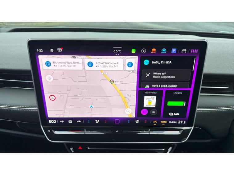 Standard specification is excellent, including a heat pump, which improves efficiency in colder weather by recycling heat to warm the cabin helping preserve battery range. Area View cameras, Park Assist Plus with memory function, and three-zone climate control add everyday convenience and comfort.