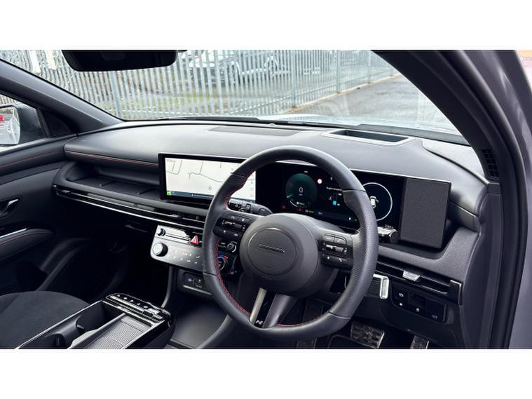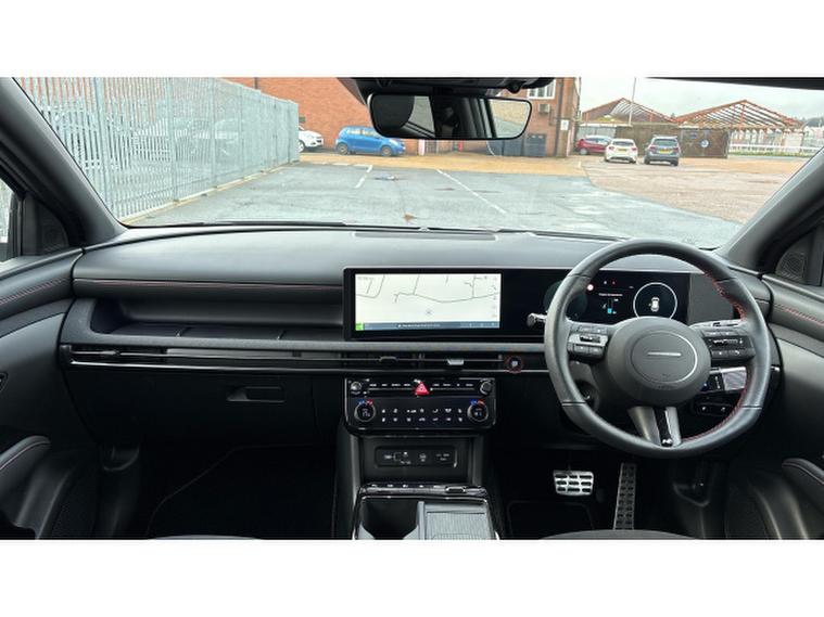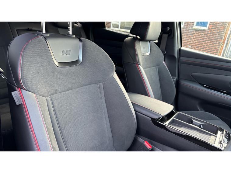 Sporty N , Line , S design cues include 19 inch alloy wheels, gloss black exterior accents and dynamic body styling, giving the Tucson a more aggressive look compared with standard trims. Inside you typically get a tech rich cabin with features like a 12.3 inch digital driver display and matching infotainment touchscreen with Apple , CarPlay and Android , Auto, wireless phone charging, premium Krell audio system, panoramic tilt and slide sunroof, heated and ventilated front seats, and ambient lighting for comfort and convenience.