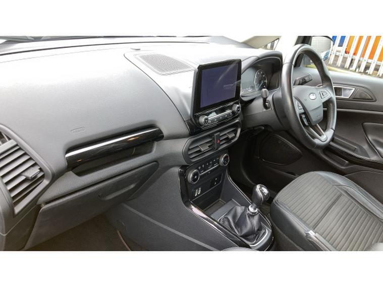 Ford EcoSport 1.0 EcoBoost 125 Titanium 5dr Petrol Hatchback, , Presenting this Ford EcoSport Titanium, a compact and versatile five door hatchback SUV that perfectly blends modern styling, practical functionality, and efficient performance in a stylish package. Powered by Fords responsive 1.0 litre EcoBoost petrol engine producing 125PS, it delivers smooth acceleration, strong fuel economy, and low running costs, making it ideal for both city driving and longer journeys. The Titanium specification enhances comfort and convenience with features including touchscreen infotainment with satellite navigation, Apple CarPlay and Android Auto, digital driver display, dual zone climate control, cruise control, keyless entry, and rear parking sensors, providing a well equipped and enjoyable driving experience. Inside, the cabin is thoughtfully designed with supportive seating, quality materials, and intuitive controls, ensuring comfort for driver and passengers alike. Safety is well catered for, with multiple airbags, stability control, and advanced driver assistance features offering reassurance on every journey. The compact dimensions, elevated driving position, and versatile boot space make the EcoSport practical and easy to manoeuvre, while retaining SUV style. Well maintained and attractively presented, this Ford EcoSport Titanium represents outstanding value, combining efficiency, modern technology, comfort, and everyday usability in a highly desirable compact SUV.
