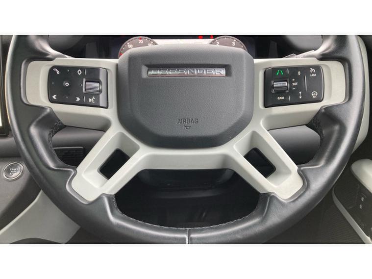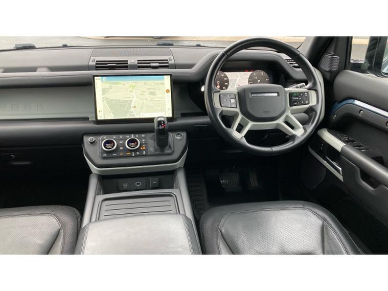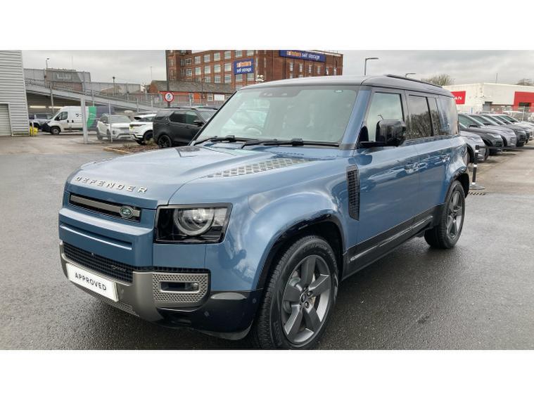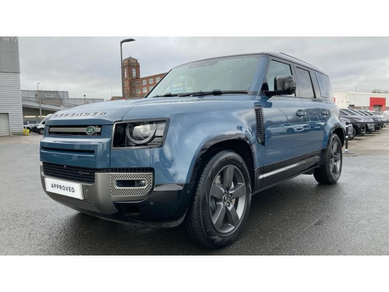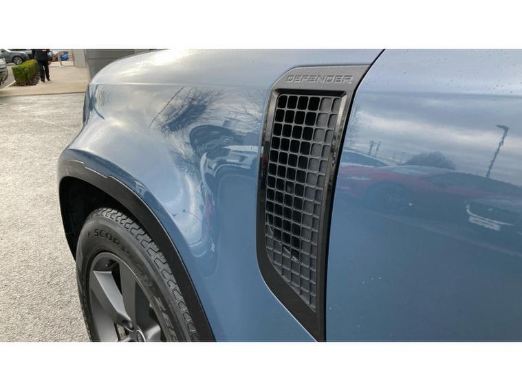 Land Rover Defender 3.0 D300 X-Dynamic HSE 110 5dr Auto [7 Seat] Diesel Estate, , Vertu JLR Bolton are proud to offer this stunning Defender 110 3.0 D300 X-Dynamic HSE 7 Seat finished in Tasman Blue metallic with ebony grained leather interior. This two owner car has been immaculately looked after and comes with a Full Service History last serviced May 2024 at 19683 miles. This car is packed full of options which include Air Suspension Pack, Family Pack, comfort and convenience pack, electric deployable towbar and secure tracker pro (subscription required). Standard features include touchscreen with Pivi pro Navigation, 3D reverse camera, parking sensors, heated and cooled front electric memory front seats, keyless entry, adaptive cruise control, dual zone climate control, Apple car play, terrain response, hill descent control, Isofix, trip computer, Meridian sound system, sliding panoramic sunroof, heated steering wheel, heated windscreen, steering wheel audio controls, 20 alloy wheels, contrast black roof, cubby box, Premium LED headlights, auto lights and wipers, Bluetooth, DAB radio and much more. This car is ready to view, test drive and drive away today and comes as part of the Approved JLR programme which includes 12 months warranty, 12 months roadside assistance, MOT test warranty, 165 multi point inspection and complimentary experience day as part of purchase.