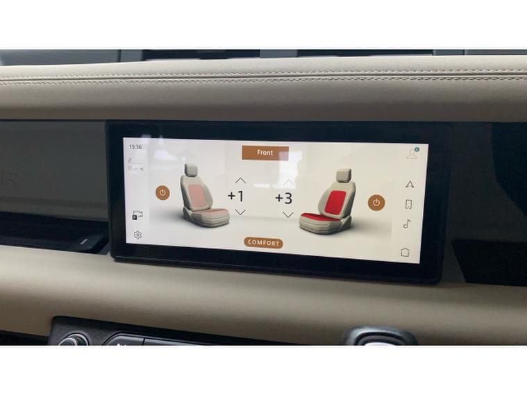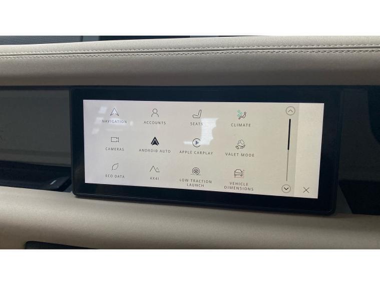 This example benefits from the Climate Pack, including heated steering wheel, heated washer jets and headlight power wash. Additional enhancements include Detachable Tow Bar, 19-inch Style 6010 Gloss Sparkle Silver alloy wheels, 19-inch full size spare wheel, White Contrast Roof, Centre Console with Armrest, Leather Gearshift, Light Oyster Morzine headlining, 12-way heated semi-powered front seats, and 40:20:40 fixed rear seats with centre armrest.
